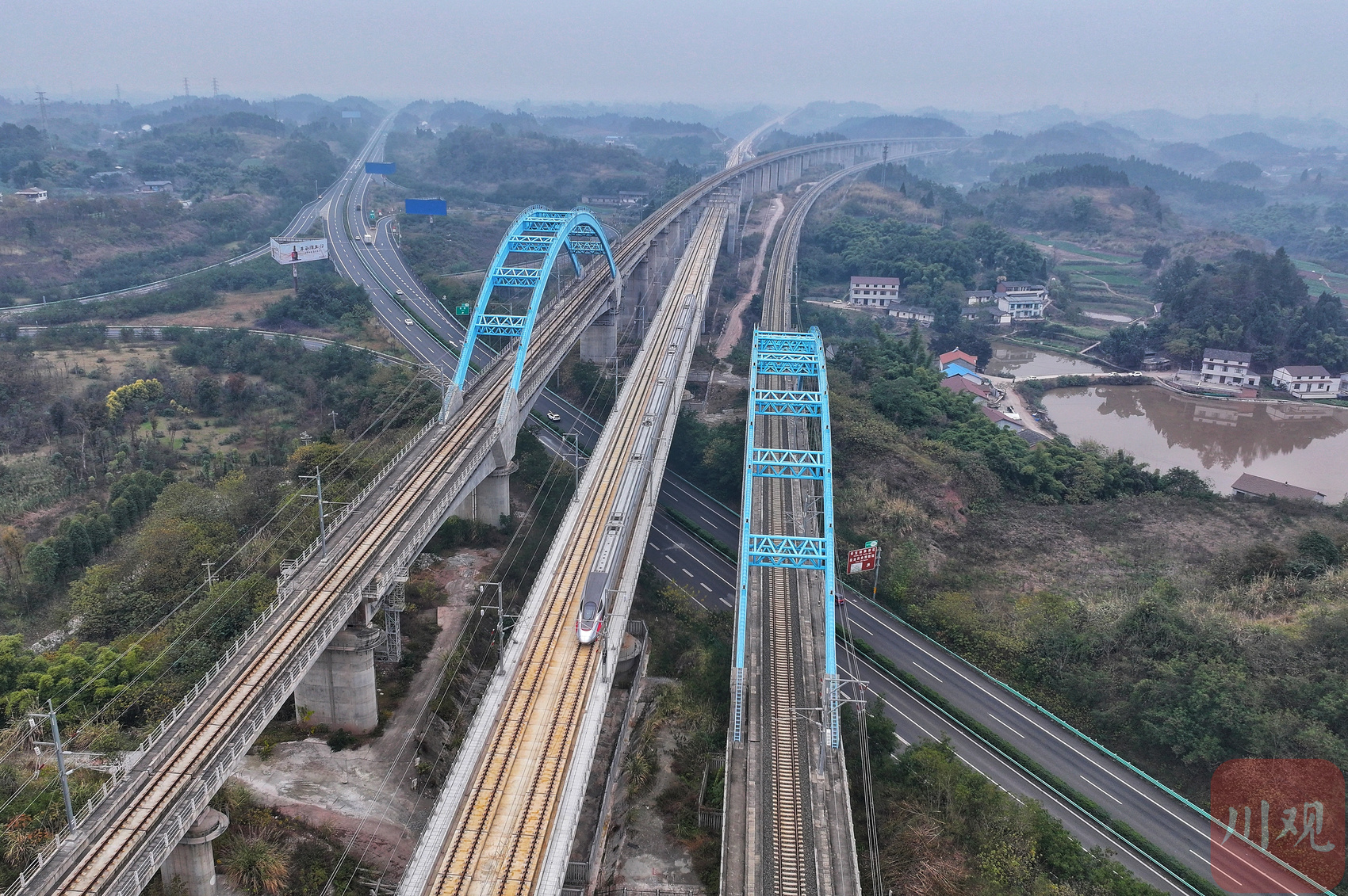 2023年12月26日,全长300公里的成宜高铁正式通车。这条高铁从成都出发,经资阳、内江、自贡到宜宾,是四川第一条新建时速为350公里的高速铁路,与绵泸高铁内自泸段一道,带动自贡迈入“双高铁”时代。
