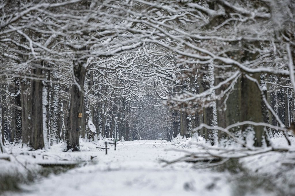 这是1月9日在法国巴黎近郊的朗布依埃森林里拍摄的雪景。