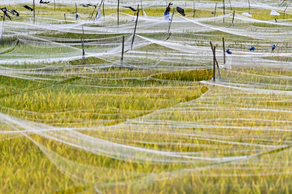 这是1月10日在印度尼西亚亚齐省拍摄的布设有网的农田。