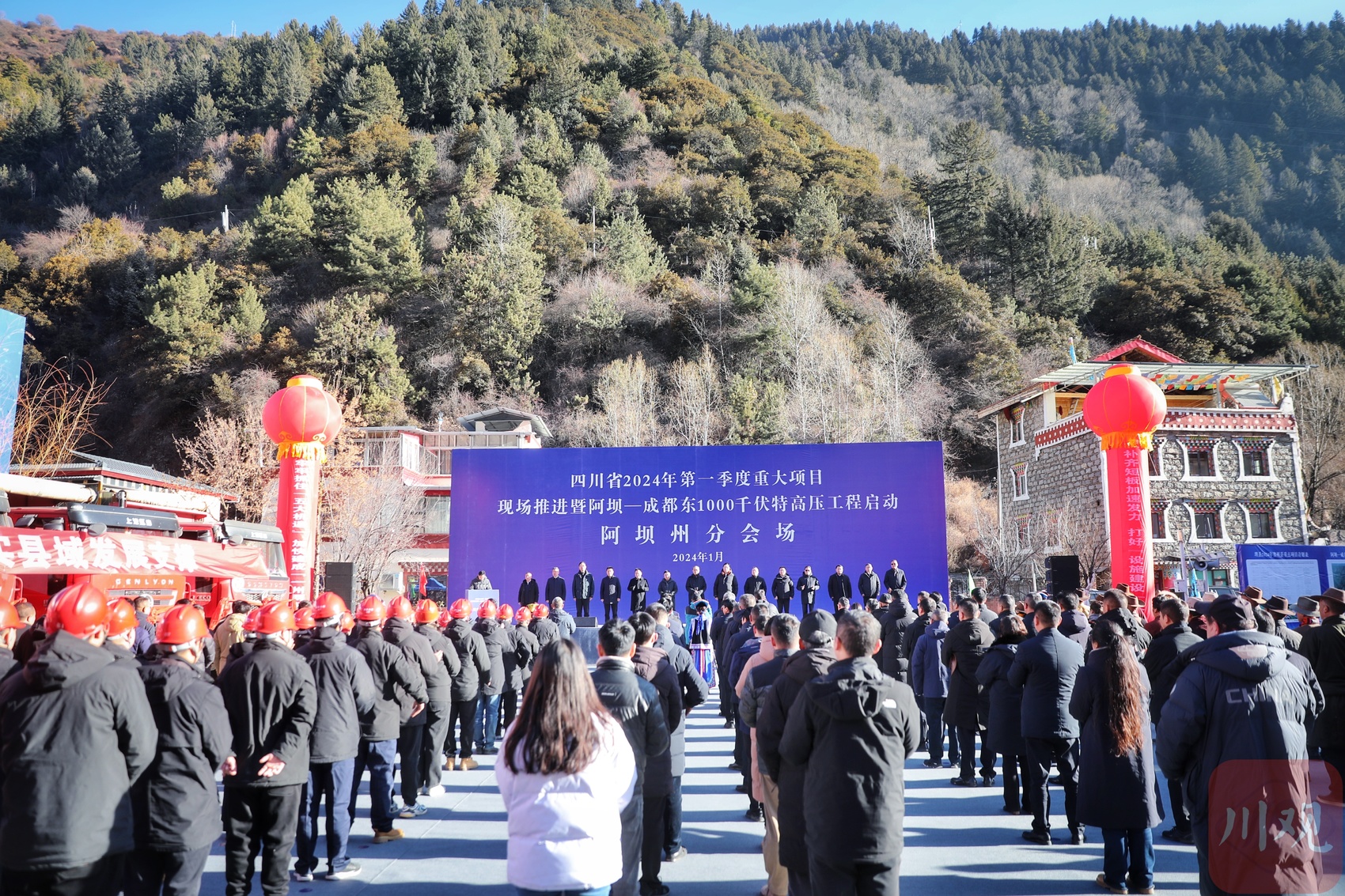 1月11日,四川省2024年第一季度重大项目现场推进暨阿坝—成都东1000千伏特高压工程启动仪式在阿坝州理县举行。阿坝集中开工项目24个,计划总投资166.64亿元,年度计划投资14.52亿元。