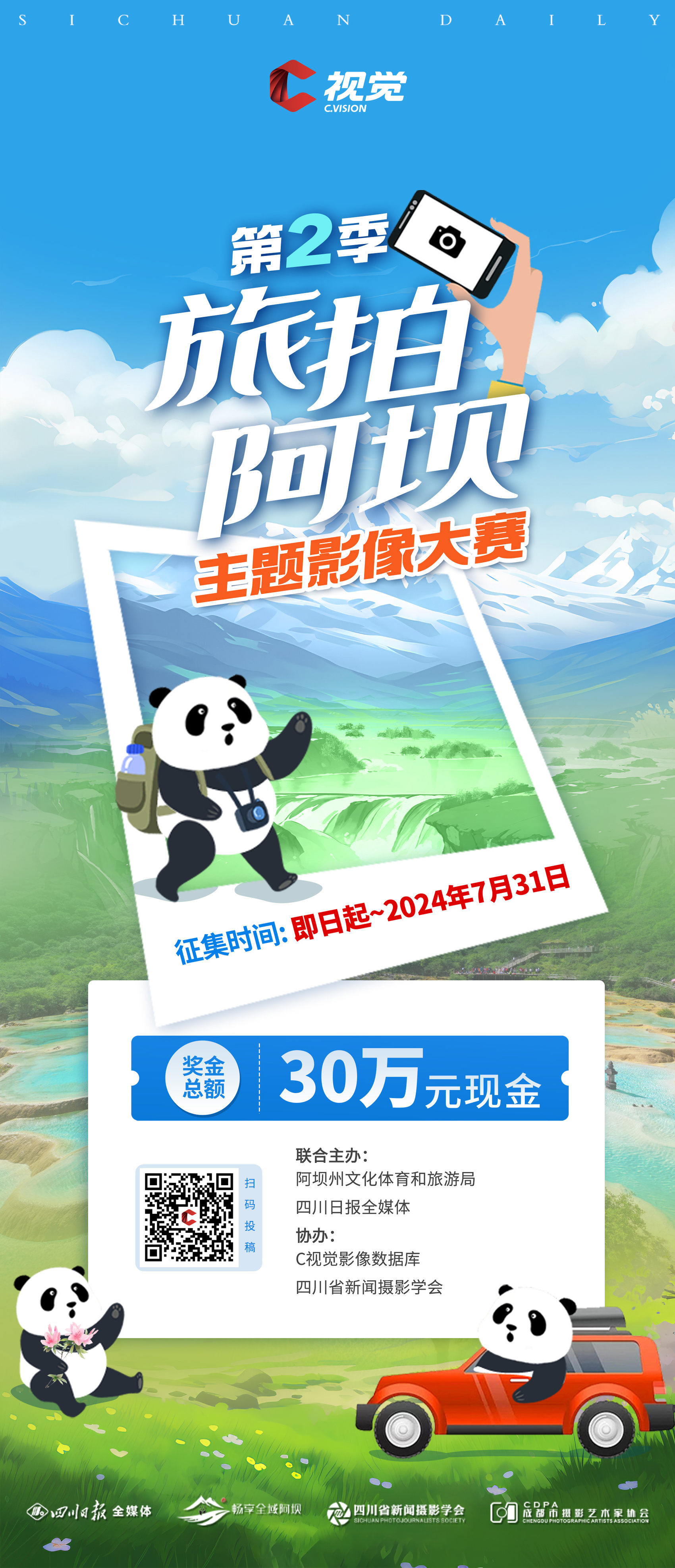 新年伊始,C视觉·第2季“旅拍阿坝”主题影像大赛有奖征集活动于1月11日正式启动,再次邀请全国摄影摄像、旅拍爱好者,访熊猫家园、拍净土阿坝。该活动由阿坝州文化体育和旅游局、四川日报全媒体联合主办,C视觉影像数据库、四川省新闻摄影学会协办。