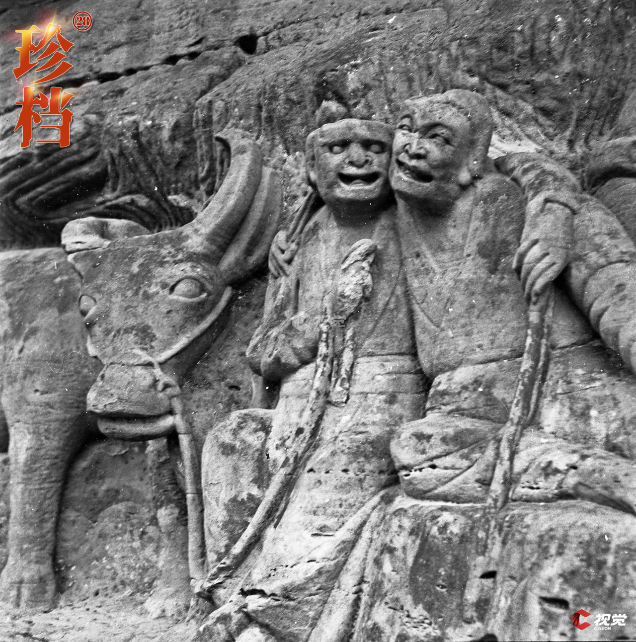 宋代石刻《牧牛图》,1962年摄于大足石刻。 李煊 摄