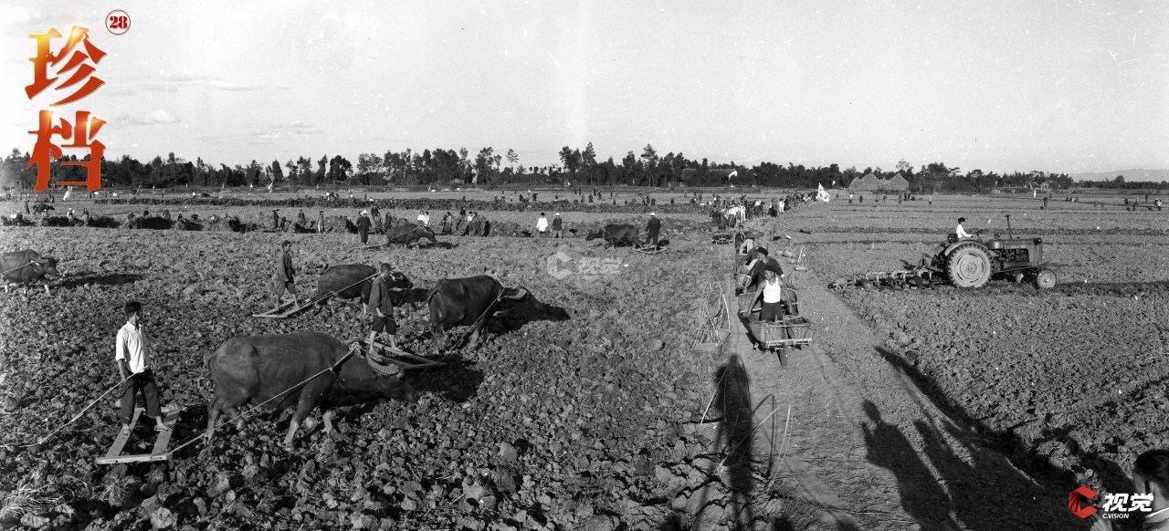 1959年,成都市华阳县石羊公社开展奋战“四秋”,夺取明年粮食丰收的耕地场面。 甘洪广 摄