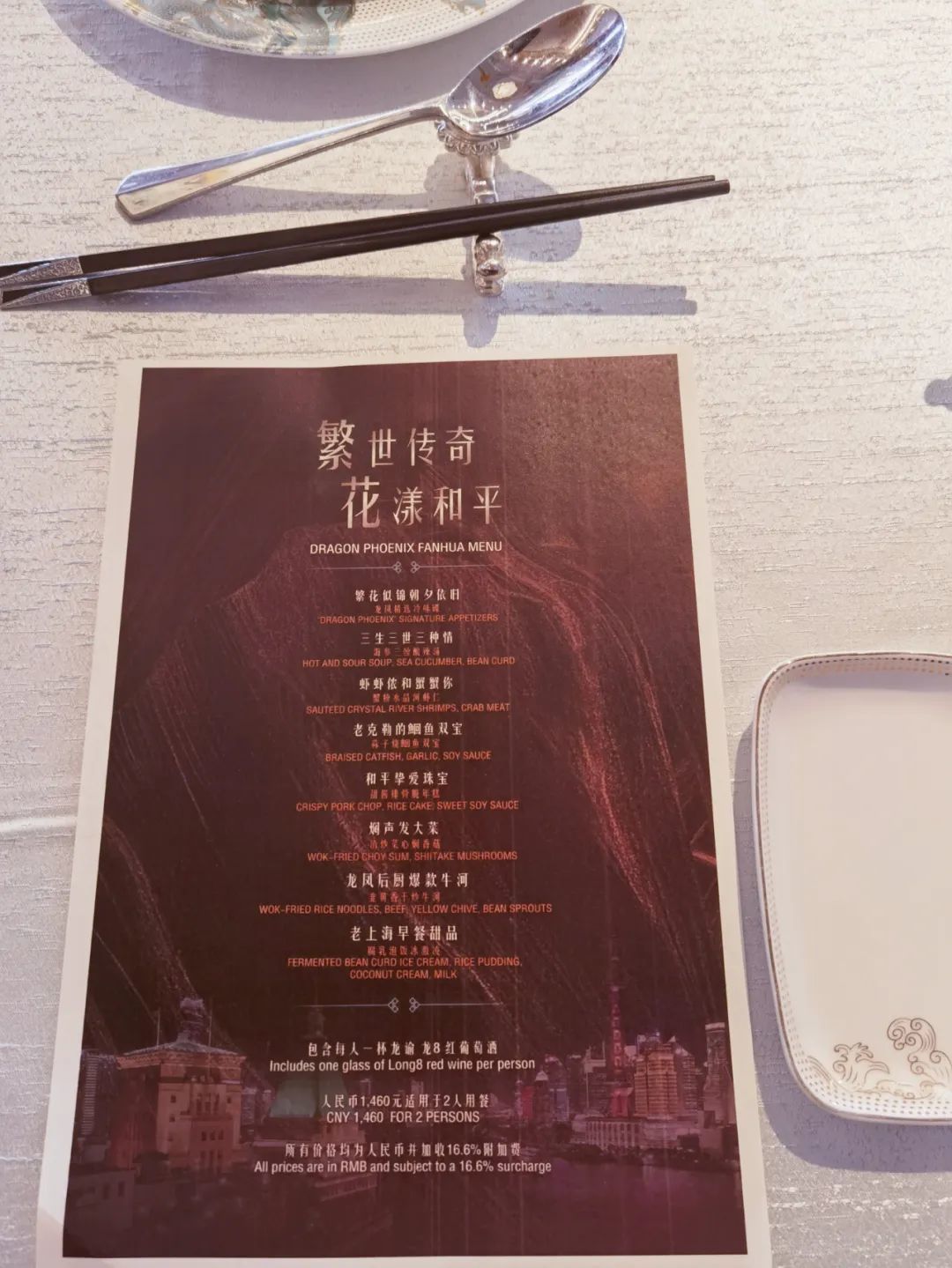 虽然套餐价格不低,但位于和平饭店东端八楼的龙凤厅环境相当不错,顾客在临窗的位置可以边品尝美食,边欣赏黄浦江和对岸陆家嘴的美景,如果是在晚上用餐,还可以饱览黄浦江两岸的璀璨夜景。