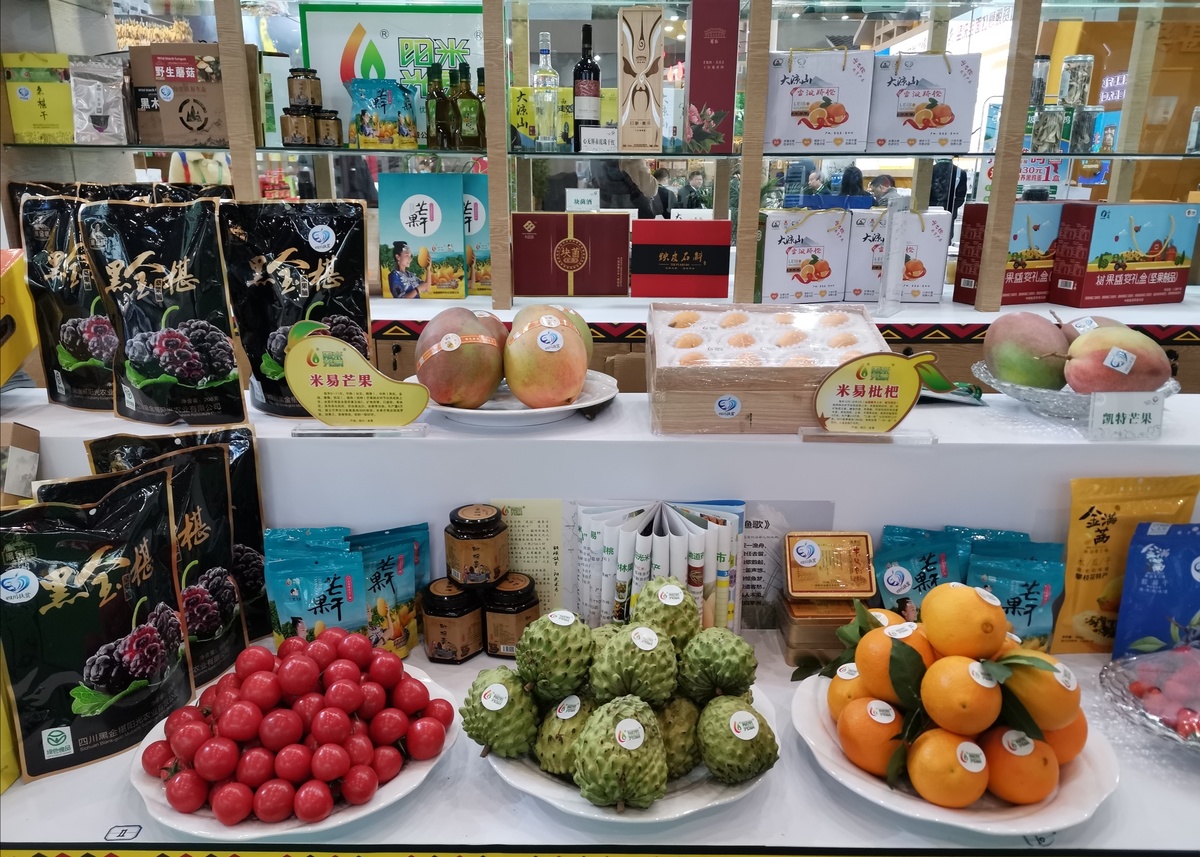 新鲜枇杷原本4月才能上市,但米易枇杷却能在春节前亮相。而在枇杷展区一旁,黄里透红的米易晚熟芒果散发着果香。“这是全国最晚下市的芒果。”米易县农业农村局工作人员罗红梅介绍。