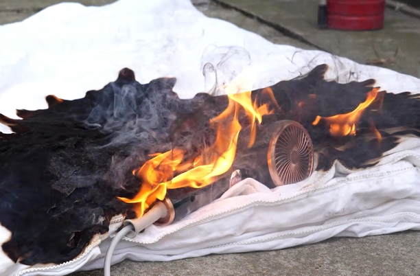 消防部门也曾做过模拟实验:打开电吹风后,用被子堵住吹风机的散热口,1分钟后,电吹风的电热丝开始发红、发烫;消防员再用被子堵住吹风机出风口,大约1分钟,吹风机的内部温度达到400℃,被子及周围的可燃物也被点燃。