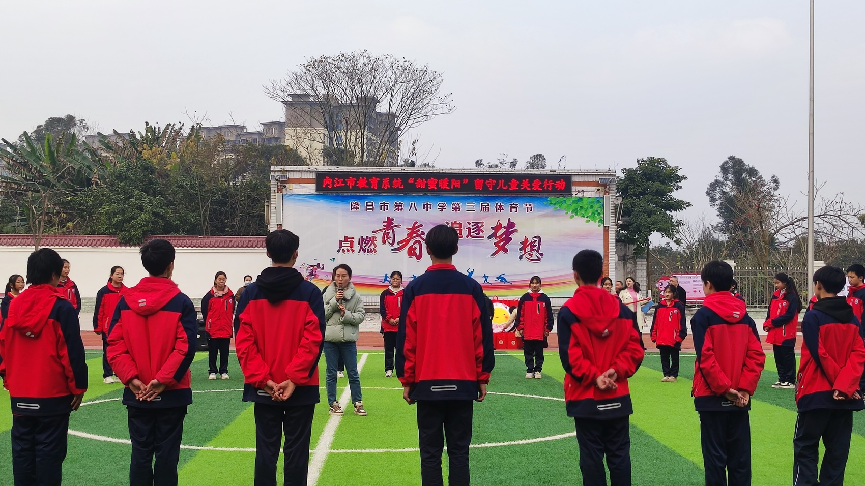 1月11日,在位于隆昌市界市镇的隆昌市第八中学操场上,一片欢声笑语。来自该校初三年级的学生在志愿者的带领下,正在开展心理健康素质拓展活动。