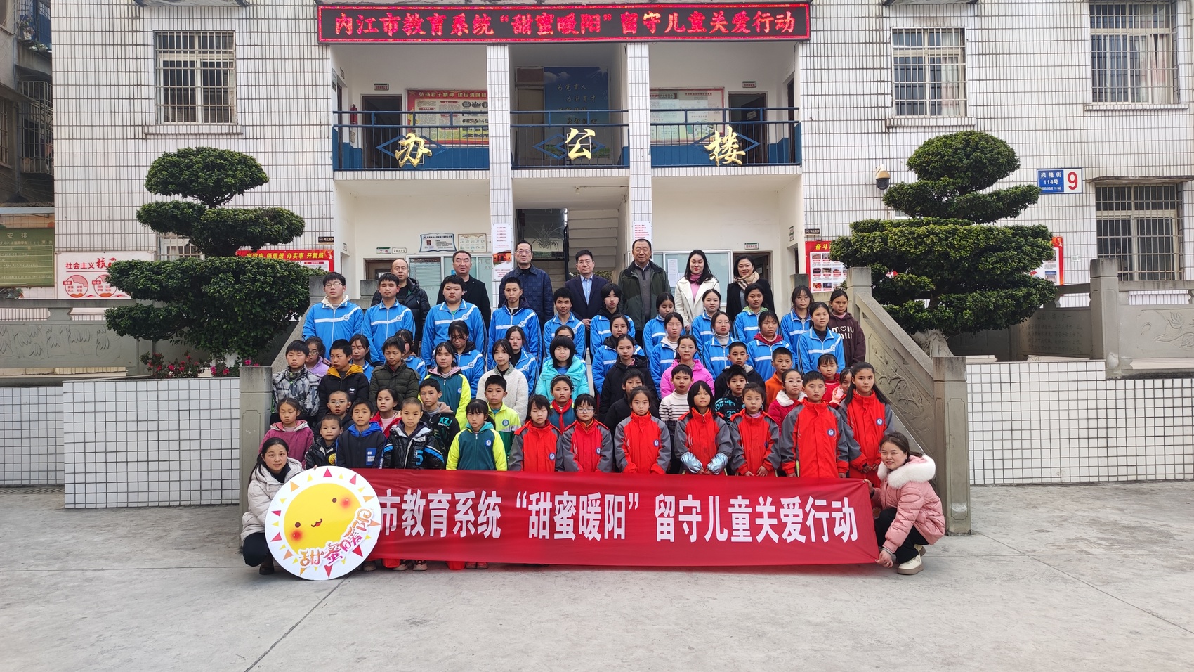 为切实做好寒假和春节期间留守、困境儿童等特殊群众的关心关爱工作,确保他们安全过冬、温暖过冬,内江市教育系统启动了“甜蜜暖阳”关爱行动,活动将持续到2月底,包括7个方面的内容,即开展一次心理健康教育主题活动、开设一节成长课堂、赠送一批爱心物资、举行一场家长培训、举行一场亲子主题活动、开展一场主题讲座、开展一场“微心愿”活动。