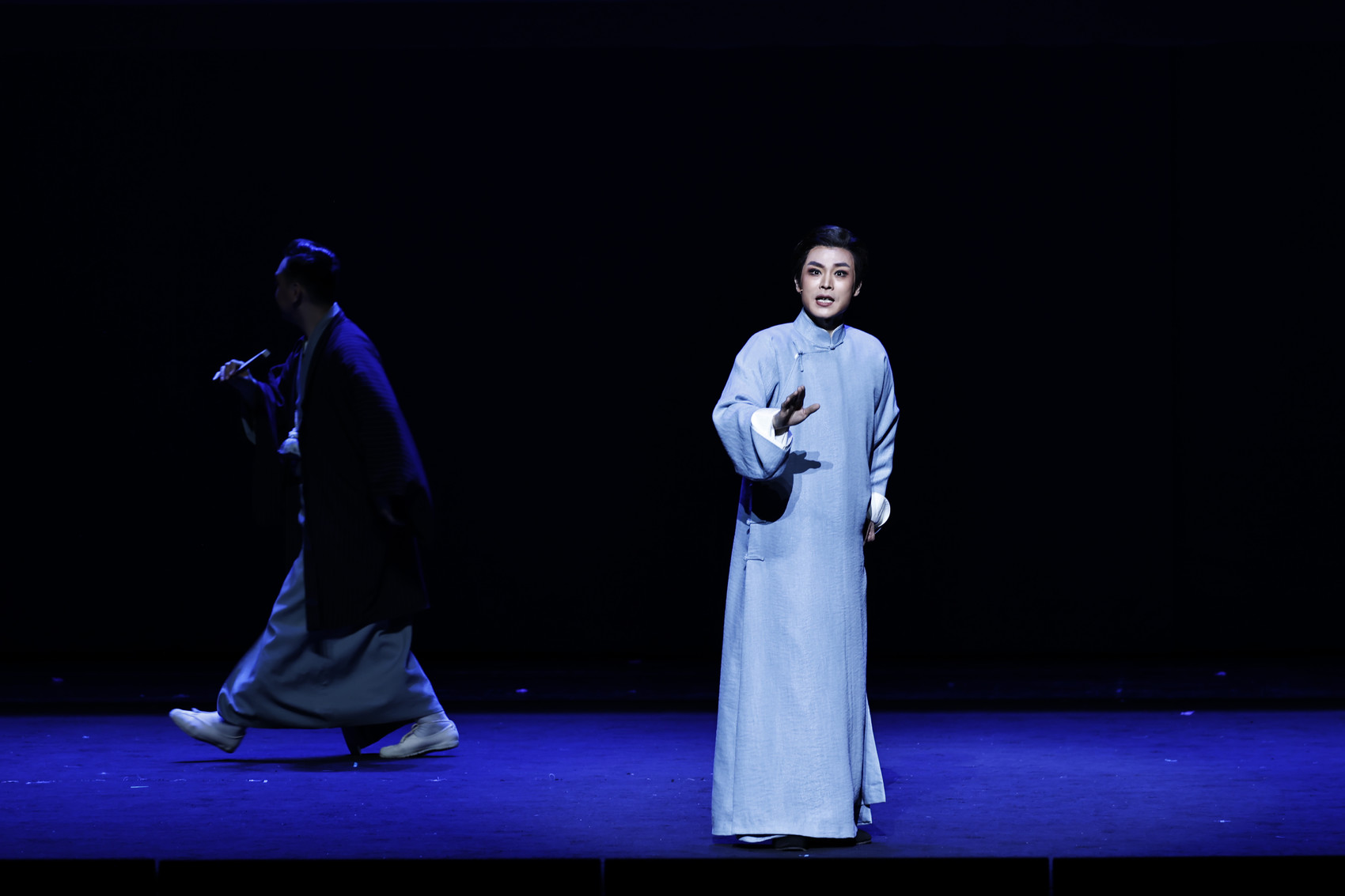 在漫天飞雪中,随着一句“来也”,梅兰芳先生缓步出场……近日,作为第十届中国京剧艺术节参演剧目,由江苏省演艺集团京剧院创排演出的京剧《梅兰芳·蓄须记》在成都城市音乐厅上演。该剧聚焦一代京剧大师梅兰芳先生的家国情怀,围绕《拒票》《拒演》《写画》《读本》四折,以京剧传统意韵为根、梅兰芳坚毅抉择为核,生动再现了梅兰芳的凛然气节。