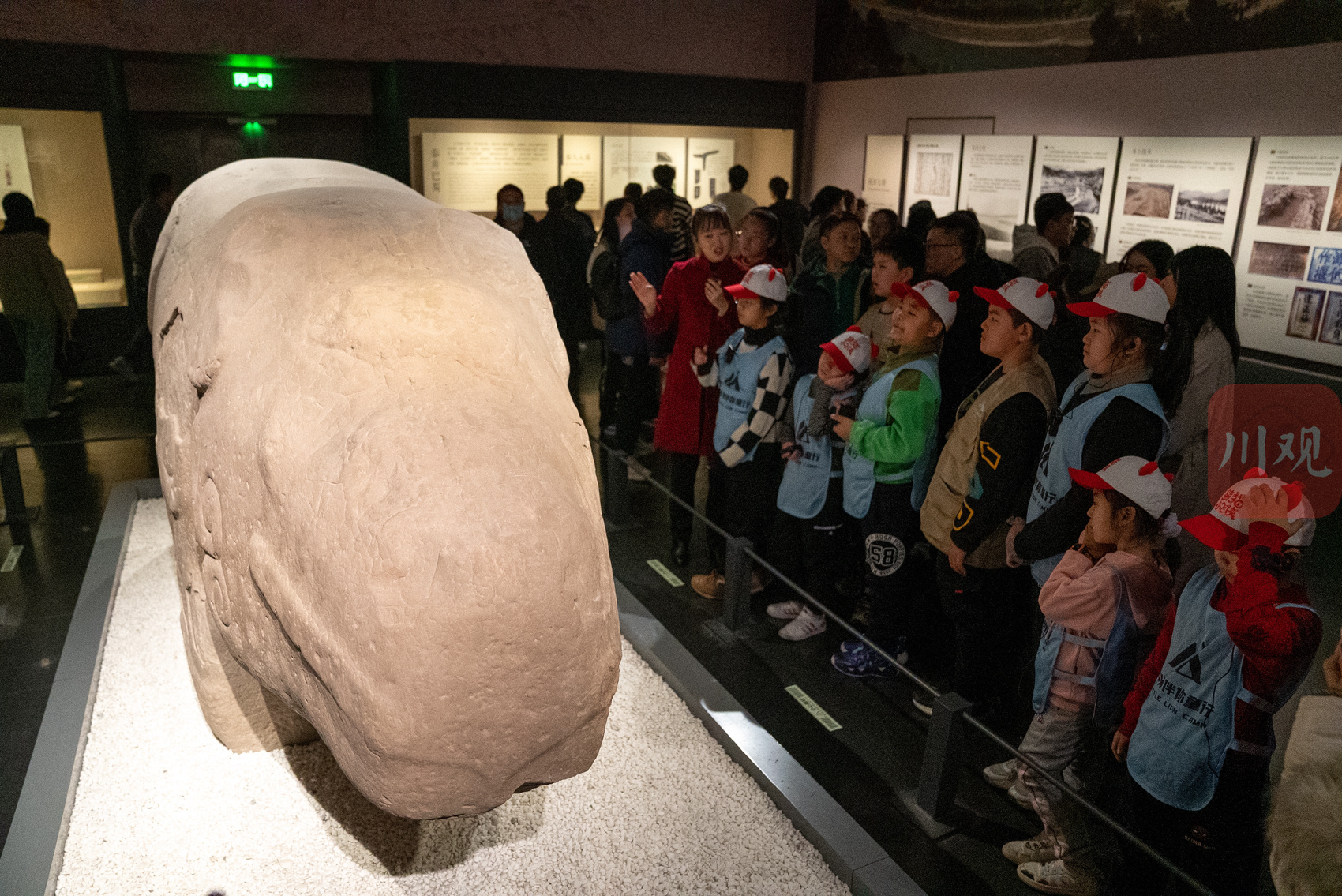 “小东北虎”在博物馆内观赏“镇馆之宝”石犀