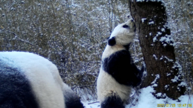 红外相机拍摄到的绵阳平武大熊猫活动画面。大熊猫国家公园王朗片区 供图