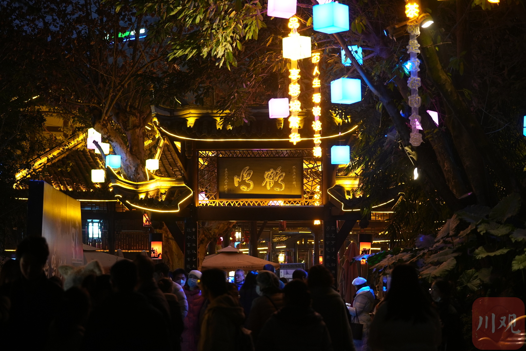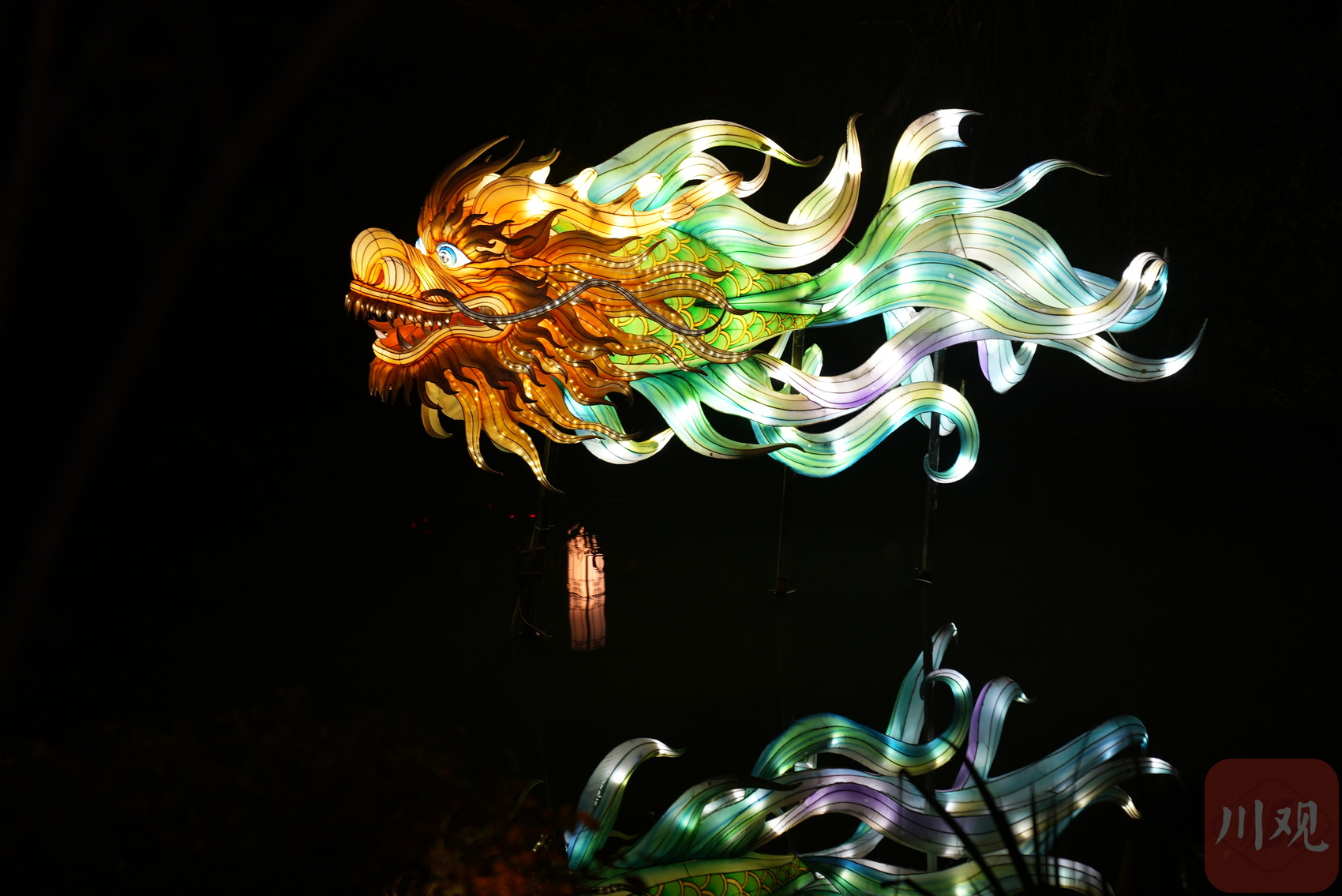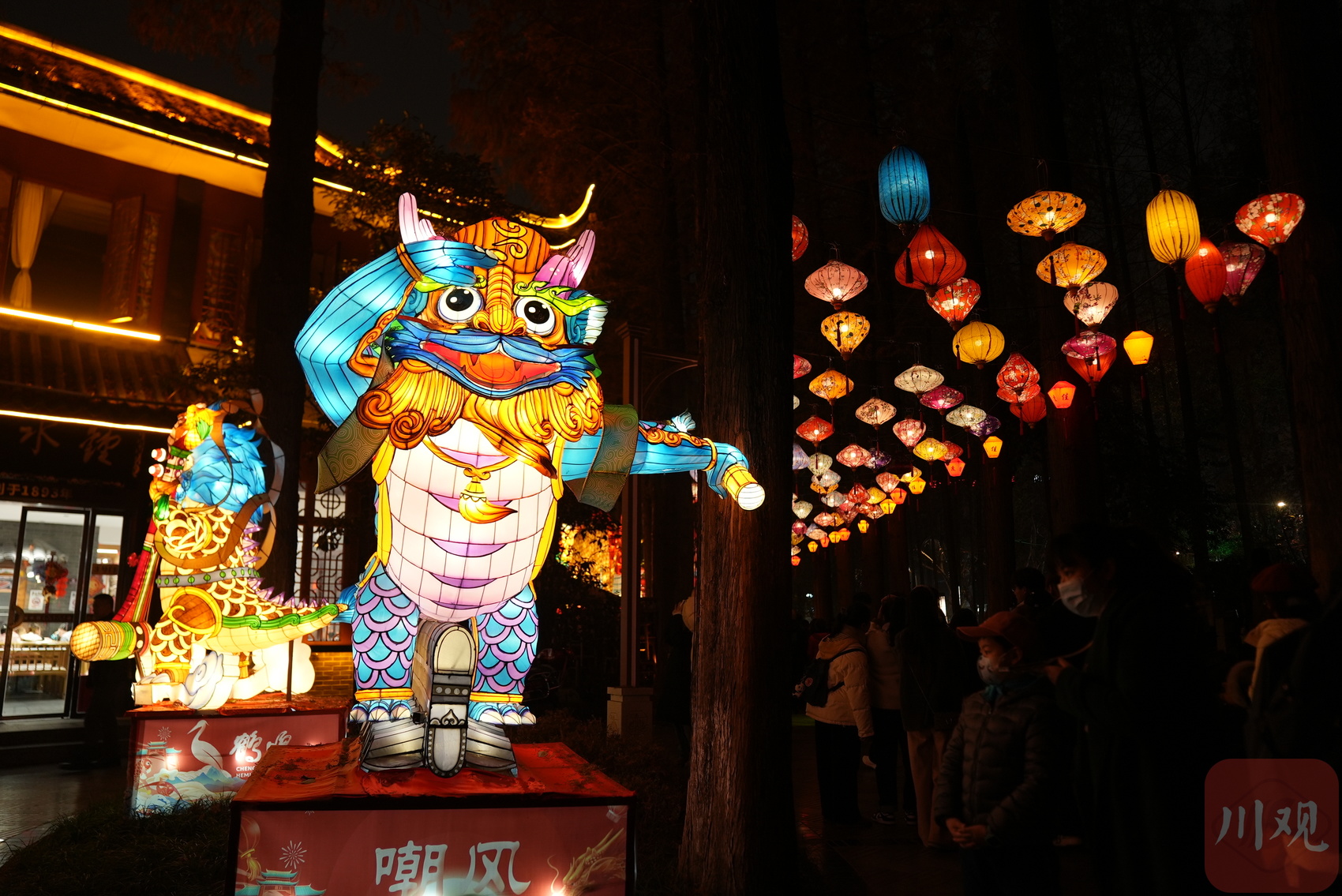 1月13日,周末夜晚的成都人民公园,热闹非凡,人流如织,欢声笑语。以鹤鸣茶社为圆心,四周布满了各式各样的彩灯,有姿态各异的龙、有印着“囍”字的盖碗茶、有表演茶艺的大熊猫等等,吸引了无数市民和游客前来打卡拍照。