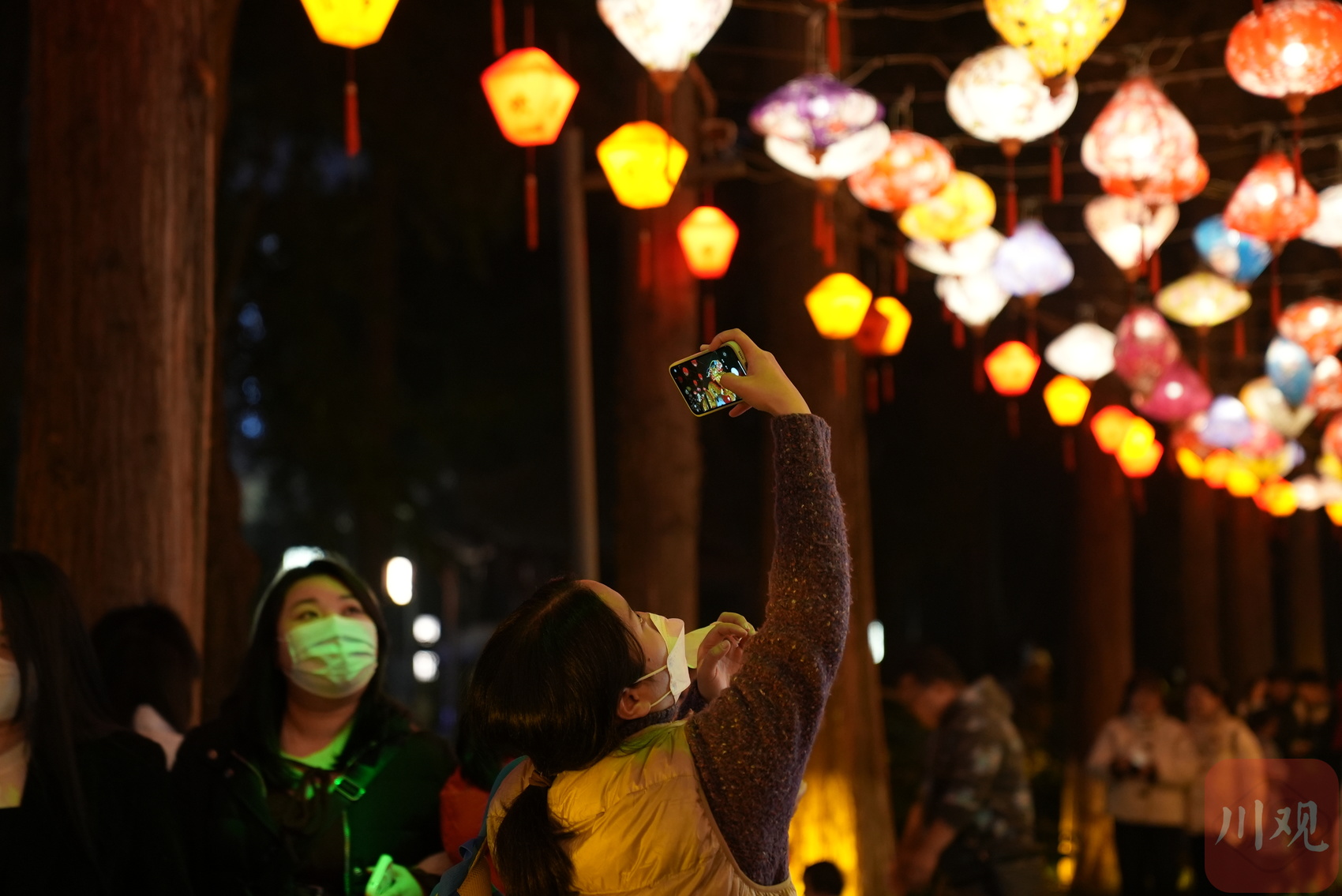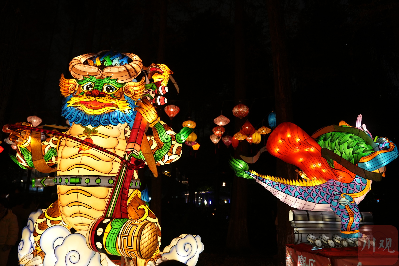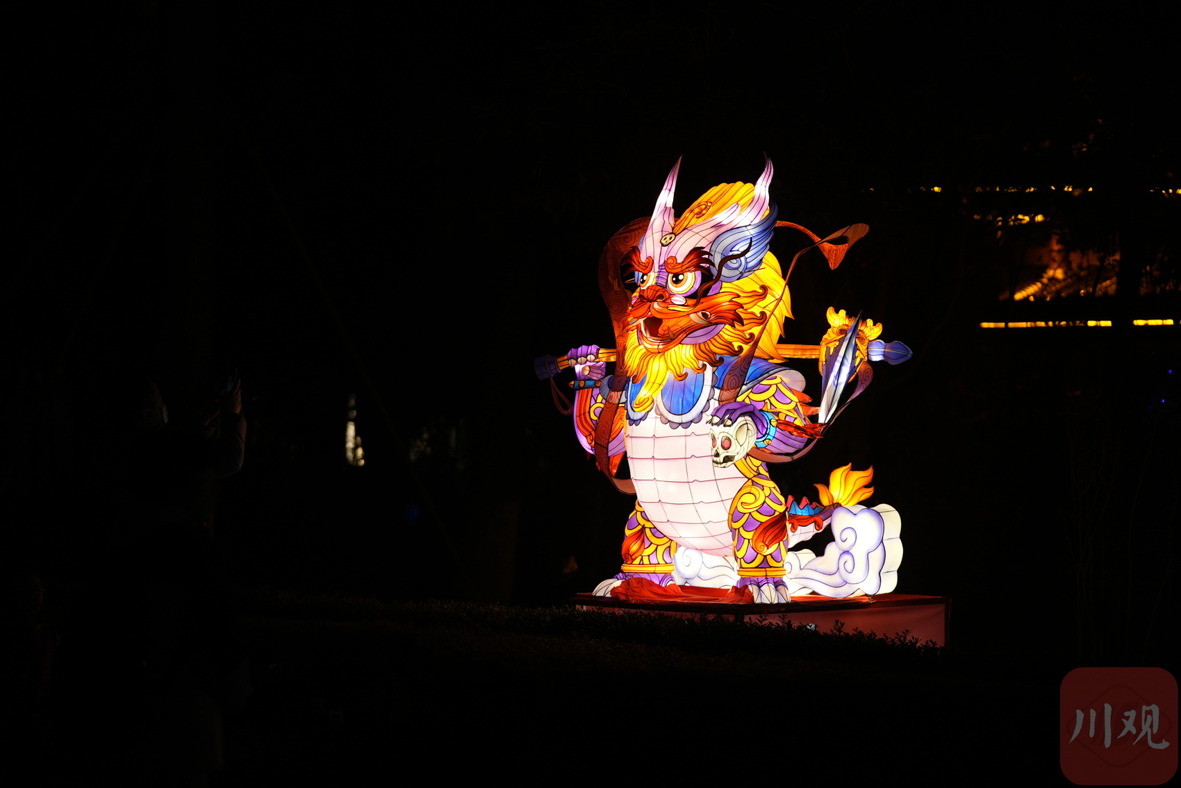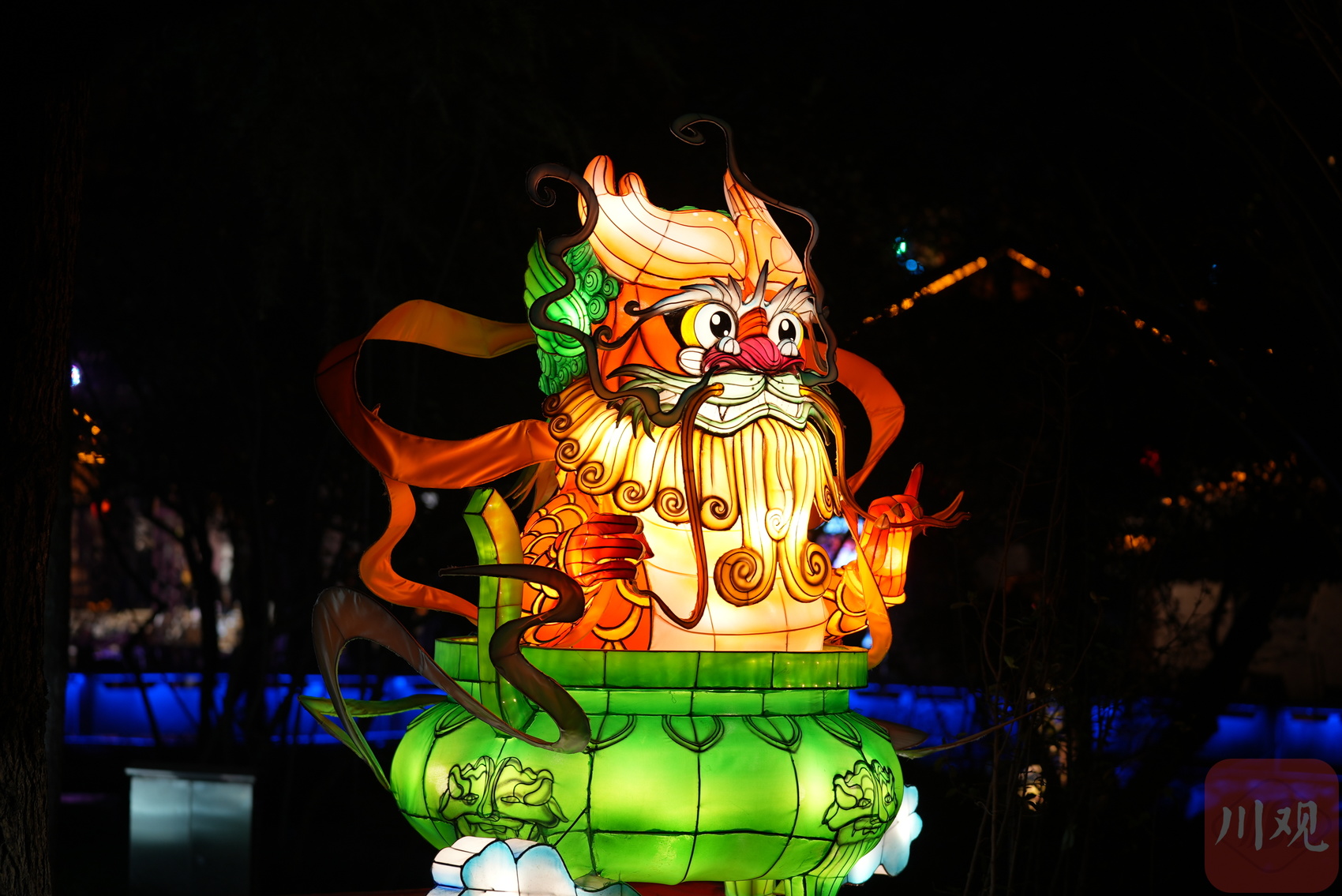 1月13日,周末夜晚的成都人民公园,热闹非凡,人流如织,欢声笑语。以鹤鸣茶社为圆心,四周布满了各式各样的彩灯,有姿态各异的龙、有印着“囍”字的盖碗茶、有表演茶艺的大熊猫等等,吸引了无数市民和游客前来打卡拍照。