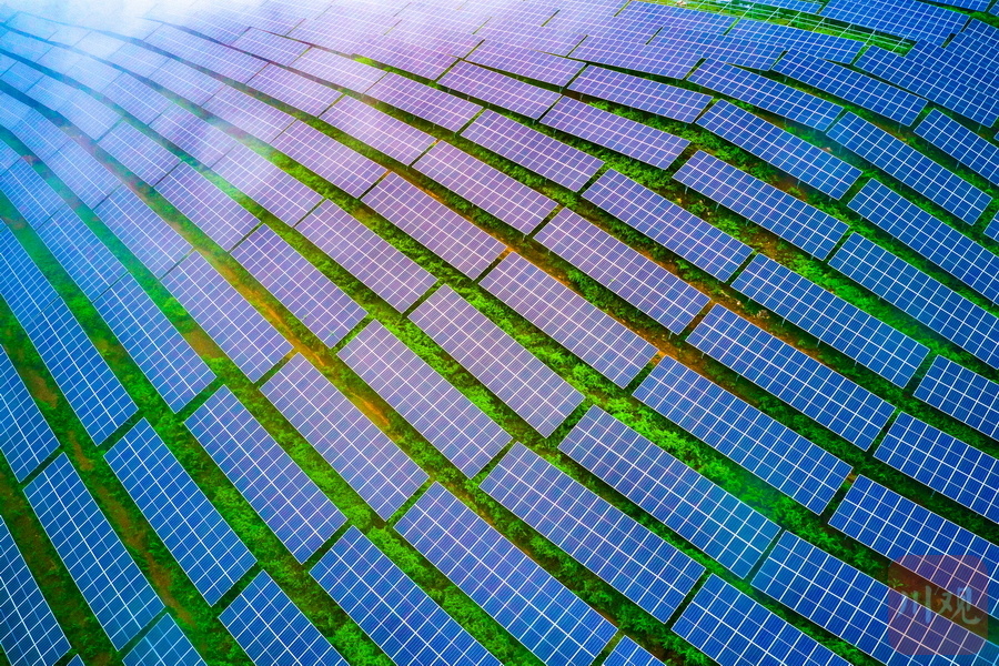 光伏电站好壮观,灰色的光伏电板漫山遍野,铺排得整整齐齐,发出来的电惠及千万家。