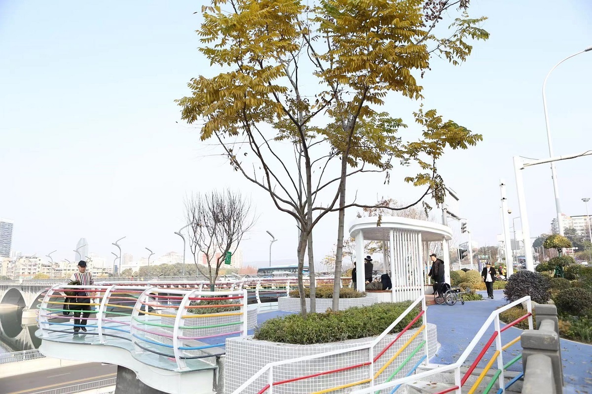 观澜园:以观景为主题,位于南河大桥南侧既有绿地,面积560平方米,栽植樱花树、紫薇树、亮金女贞、鼠尾草等植物,设有钢化夹胶玻璃观景平台50平方米,设有星空顶休闲亭1处。