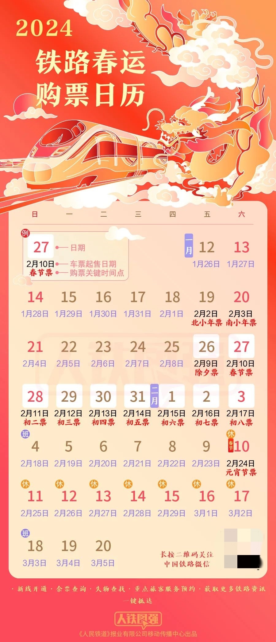 收藏好春运购票日历!了解优化后的改签新规,让我们出行无忧,龙年当头,乘坐便捷的高铁出游玩个痛快!😃👍
