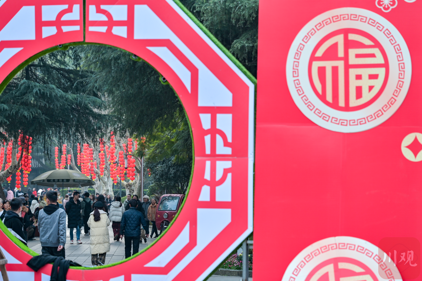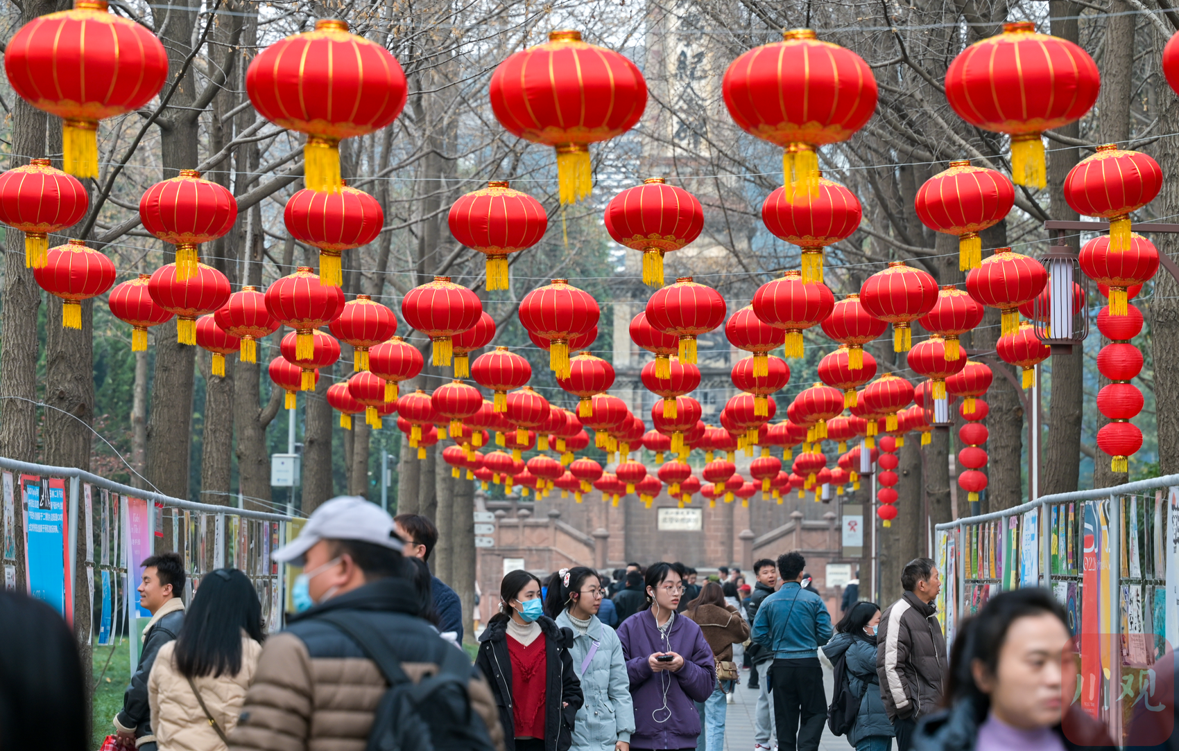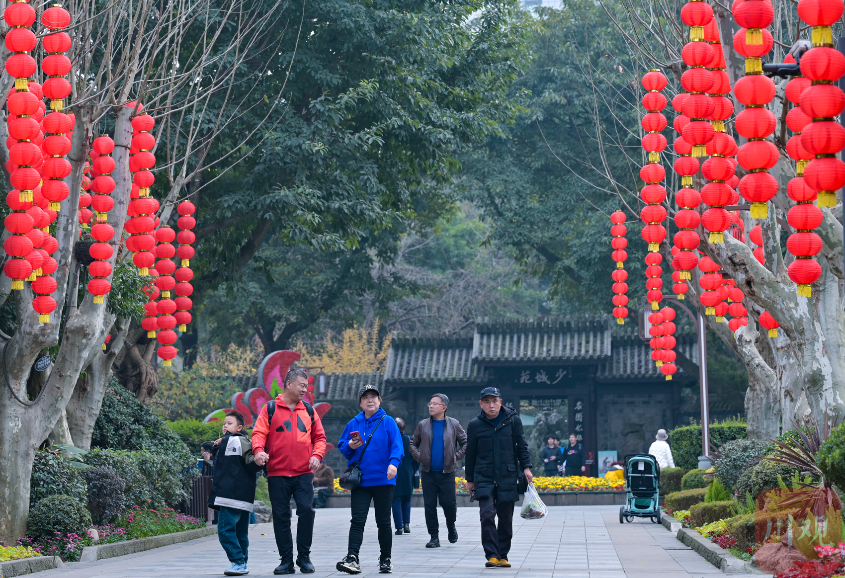 年味迎面扑来,游客开心满怀; 公园张灯结彩,喜迎八方来财!