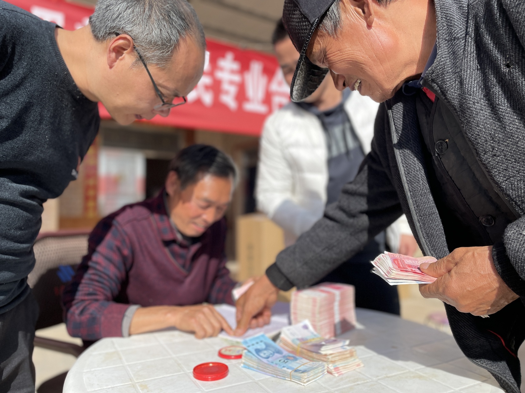 合作社分红大会上,社员领到分红,面露笑容。受访者供图