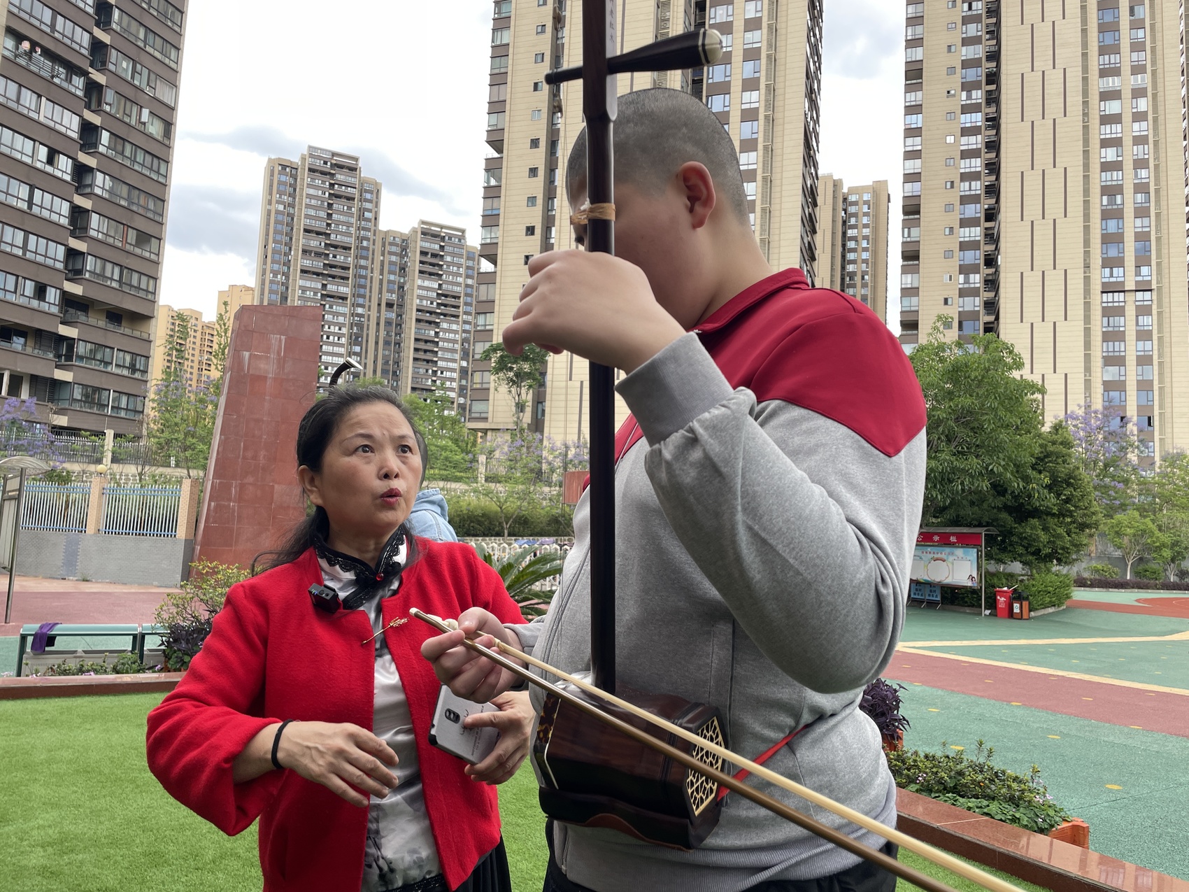 “一边学一边教,我又萌生了新想法。”李月莉回忆,听说身边有不少家庭困难的孩子想学二胡,她想起了童年的自己,“我想让那些和我一样喜欢二胡的孩子都能学上二胡,拉上二胡。”联系上雁江区的几所学校,表明来意后得到了支持,她挨家挨户“家访”,找来了15名困难学生。
