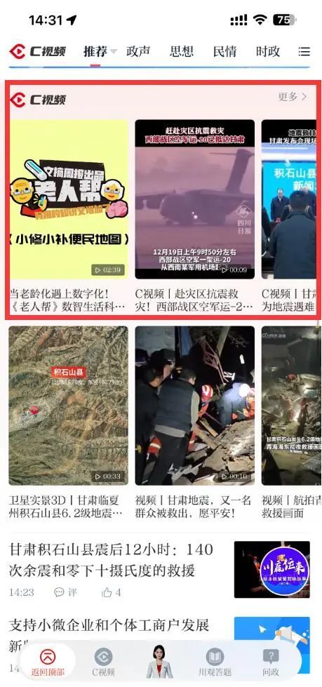 3.下载川观新闻客户端,在首页C视频专区收看。