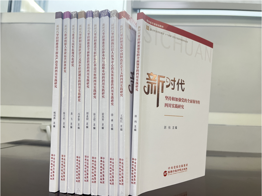 《新时代坚持和推进“十个明确”的四川实践专题研究系列》系列丛书由中共四川省委党校(四川行政学院)组织编写,由国家行政学院出版社出版并公开发行。全系列分为10册,以党的二十大正式总结的“十个明确”内容为研究依托,是贯通马克思主义哲学、马克思主义政治经济学、科学社会主义,贯通历史、现在、未来,贯通改革发展稳定、内政外交国防、治党治国治军等各领域的系统研究,具有思维与逻辑相统一、体系化与学理化相结合、理论与实践相促进等特色。据悉,该丛书已进入了四川省委党校(四川行政学院)各类干部培训课堂,获评省委组织部2023年全省干部教育培训“好教材”,并由此转化为“十个明确”系列公开课免费向大众开放。在2024年北京图书订货会上,该丛书也放在了国家行政学院出版社的重要展出位。
