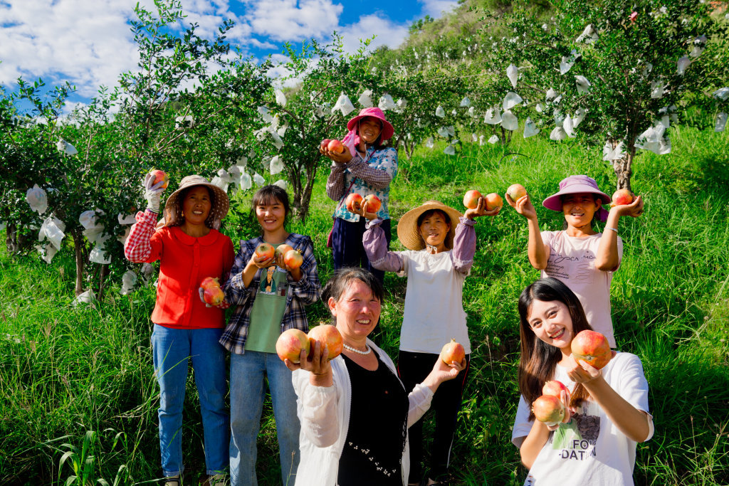 何爽的公司成立7年来,员工基本都是本地人,并且优先雇用庭困难人员。除固定岗位外,公司还长期提供打包岗位100余个、装卸工岗位20余个、选果岗位20余个,为附近村民提供了在家门口就业的机会。何爽还带动周边几十户农户一起做电商,鼓励他们对石榴品种进行改良,并对进行石榴改良的贫困户提供资金补助。在收购乡亲们石榴时,该公司的价格也会高于市场收购价格。