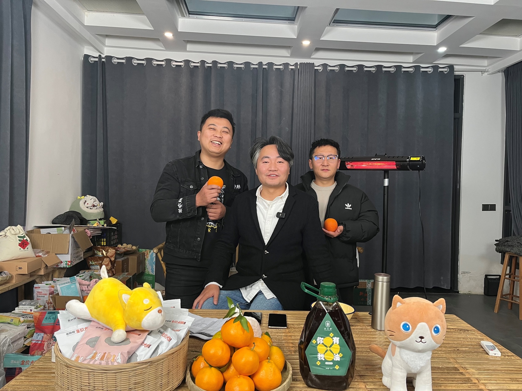 杨兴(中)和团队正在直播。