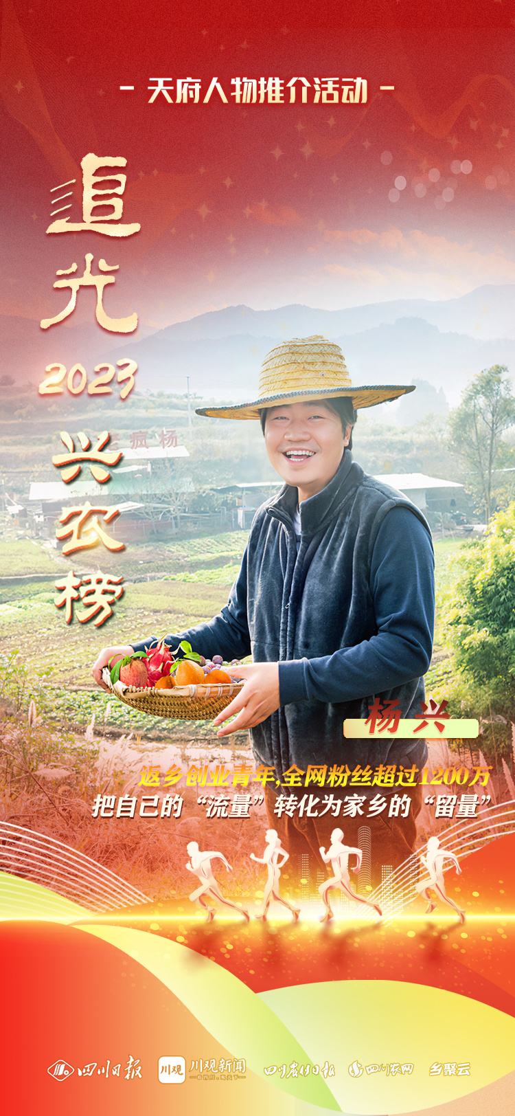 杨兴,南充返乡创业青年,全网粉丝超过1200万,在互联网上更为大众熟知的名字是“老疯杨”,其相关话题阅读量仅在抖音平台已达到10亿。他是流浪动物爱心救助人,是“天兴桥”及“老疯杨”品牌创始人,也是一位投身家乡建设的有志青年。