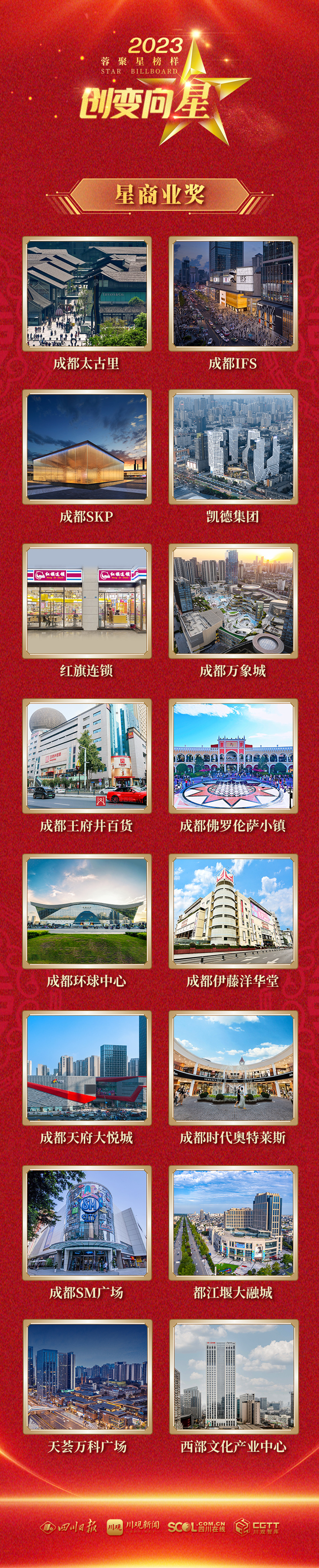多年来,四川日报全媒体是成都商业发展的见证者、参与者,连续14年举办“星榜样”系列活动,持续以行业特色融媒体活动,传播榜样声音,传递榜样力量,呈现商业领军人物大胆进取、持续创新、脚踏实地、勇者无惧的时代精彩,推动成都商业行业高质量发展。