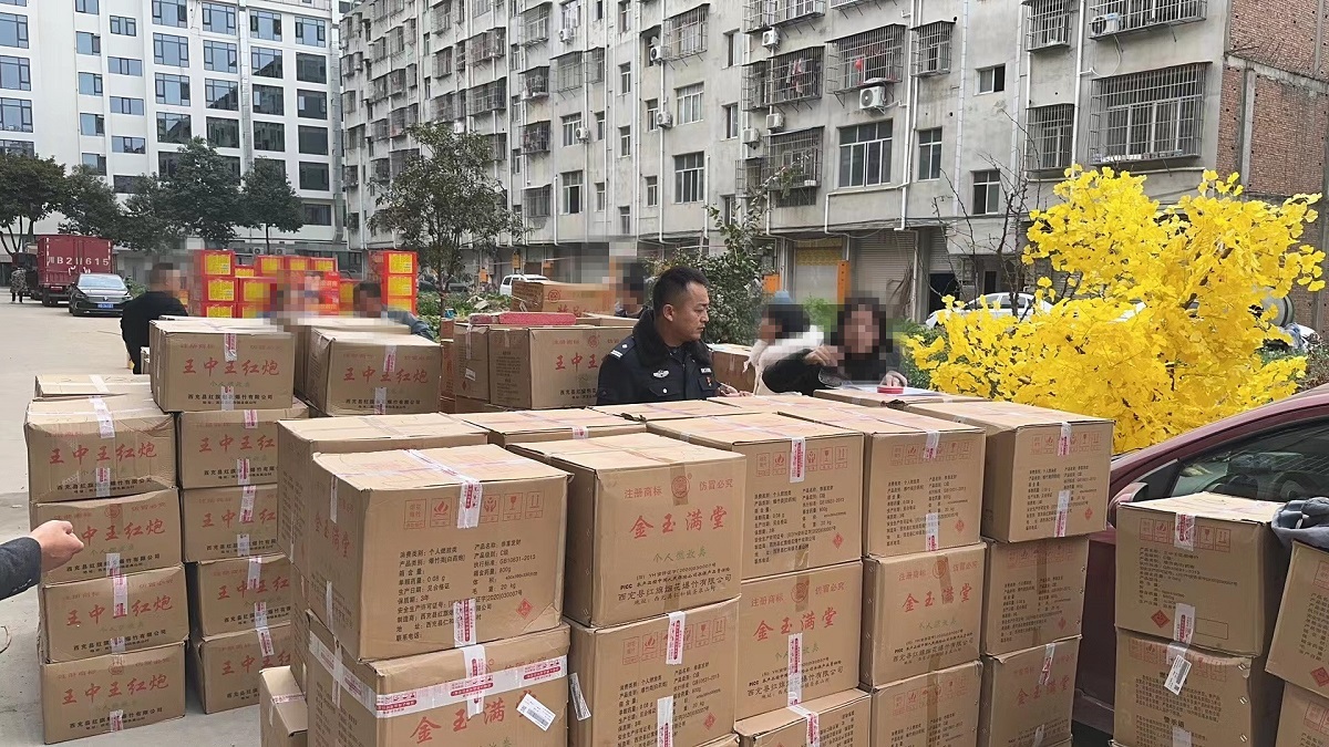 1月15日,梓潼公安在工作中发现辖区有人非法运输、销售烟花爆竹。根据掌握线索,民警在梓潼县一小区仓库附近蹲守18小时,将正准备非法出货售卖烟花爆竹的犯罪嫌疑人罗某某抓获,现场查扣烟花爆竹555件,涉案价值4万余元。