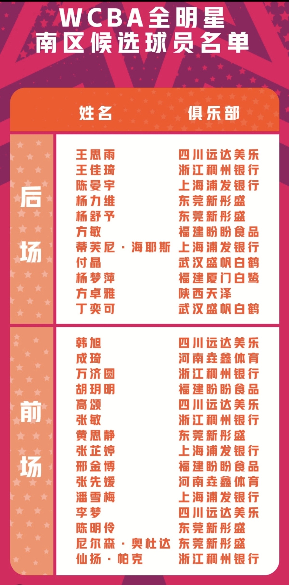 四川女篮4人入选南区投票阵容。图片来自WCBA联赛官方微博