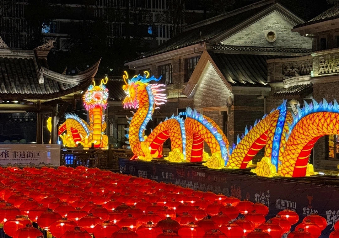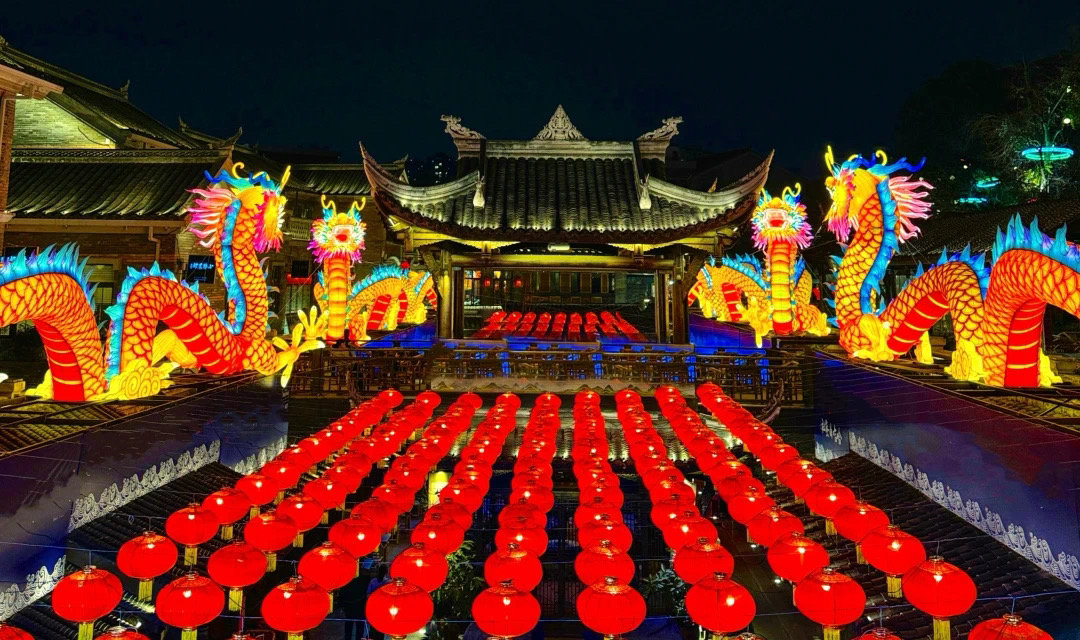 1月18日晚,成都市锦江区东门市井“亮灯”,璀璨灯火再现了李劼人笔下老成都灯会,各色以“龙年”为主题的花灯、彩灯齐聚,形态各异、栩栩如生。市民群众在灯会中不仅能观看舞狮表演,还能品尝正宗的川菜美食,活动将持续到2月24日元宵节,为成都增添浓浓年味。