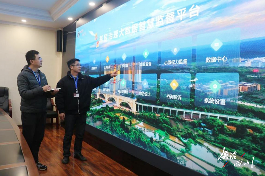 资阳市纪委监委探索建立基层治理大数据监督平台,动态收集惠民惠农政策及民生资金管理、支付、使用情况,定期开展数据比对,及时发布预警信息。图为资阳市纪检监察干部运用大数据监督平台开展小微权力运行监督,严肃查处群众身边的“微腐败”及作风问题。(刘施邑 摄)