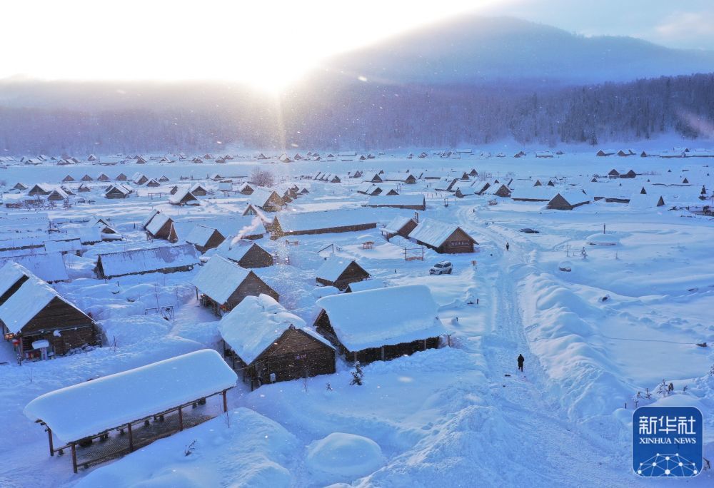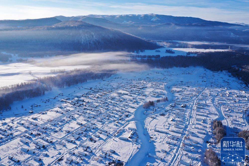 ↑1月17日拍摄的新疆阿勒泰地区布尔津县禾木村(无人机照片)。