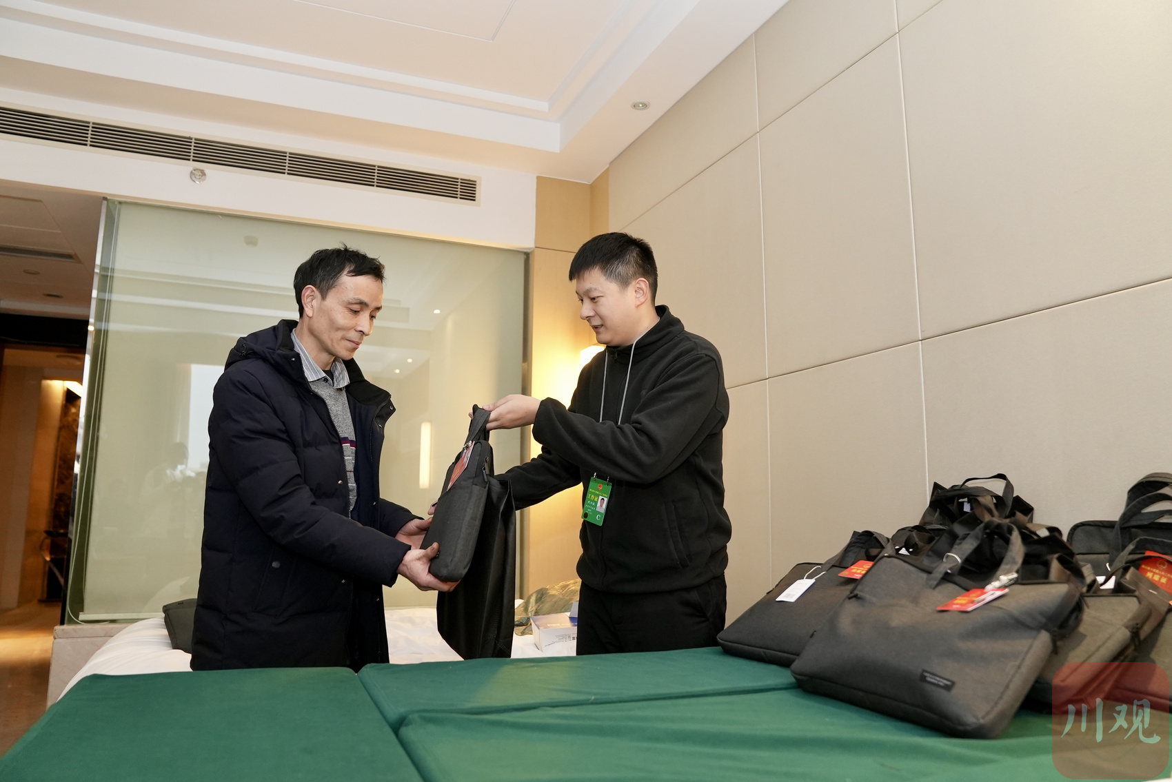 1月20日,自贡代表团工作人员为省人大代表来驻地报到准备相关资料。