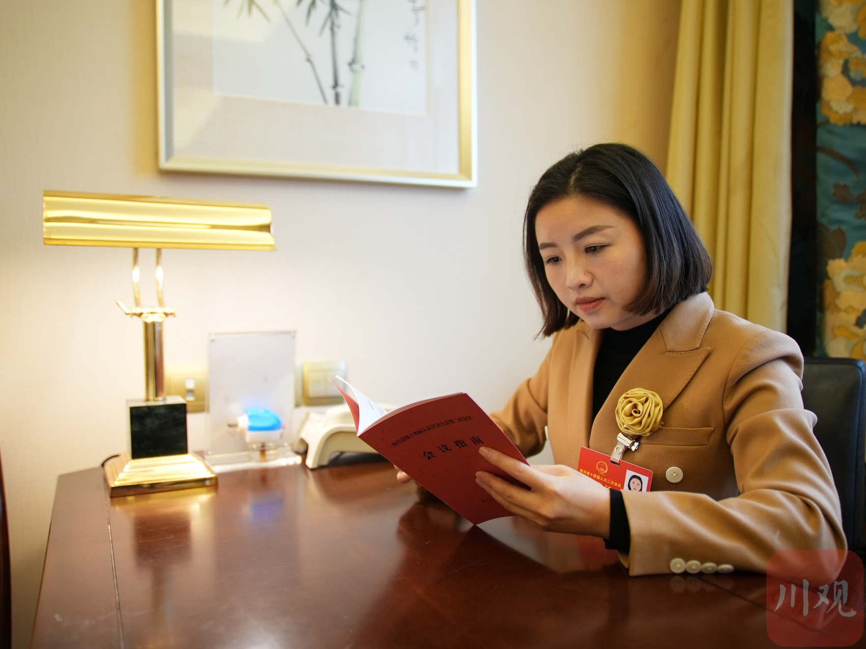 1月20日,邓小燕代表在驻地阅读会议指南。