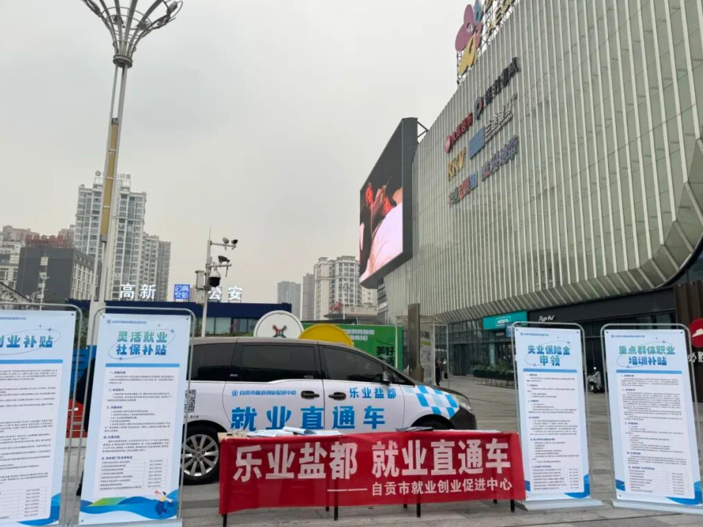 2024年1月5日,宁夏回族自治区就业援助月专项服务活动启动仪式在宁夏石嘴山市万达广场举行,工作人员在活动现场直播带岗。新华社记者 李旭伦 摄