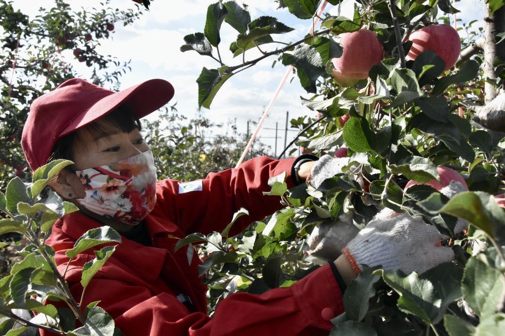 果农尚生艳一天要经手两三千斤苹果。“现在城郊就有果园子,一年四季都有活干,每年4月到10月的苹果生长期,我来一天就能挣150到180块钱。”她说。