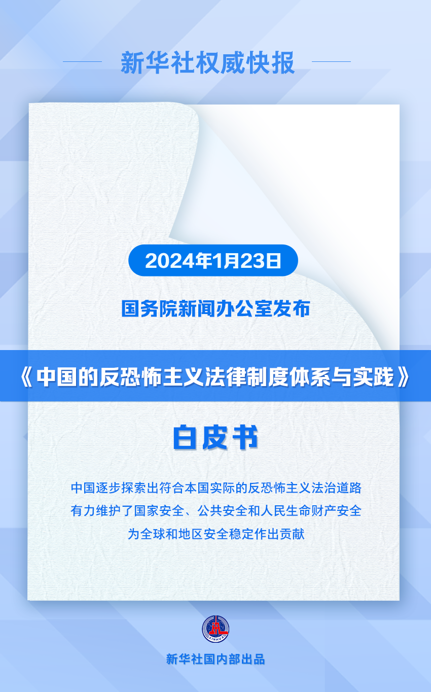 国务院新闻办公室1月23日发布《中国的反恐怖主义法律制度体系与实践》白皮书。