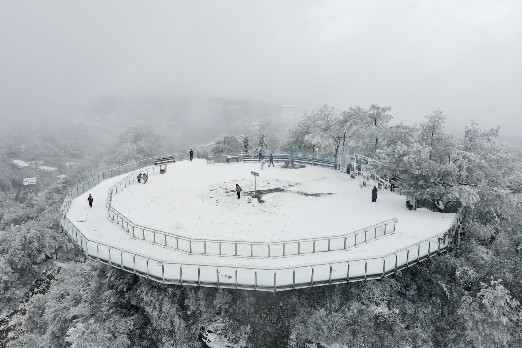 1月21日,广安五华山旅游区、华蓥山旅游区飘起大雪。↓