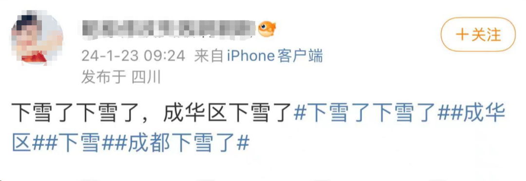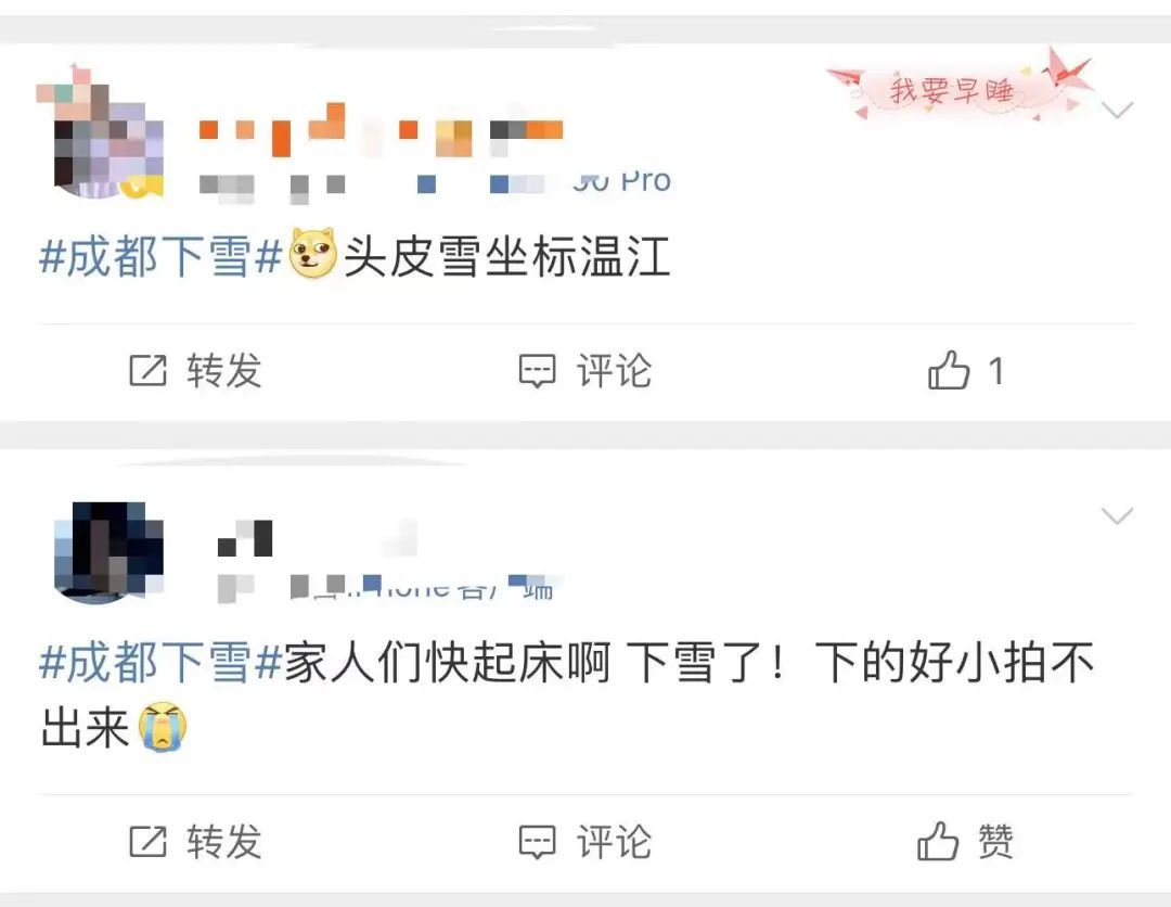 今天(1月23日)上午,多位成都郫都区、龙泉、新都网友发消息称“下雪了”,虽然只是“头皮雪”,但限量版精准投放,“头皮雪”也算雪,你有看到吗?