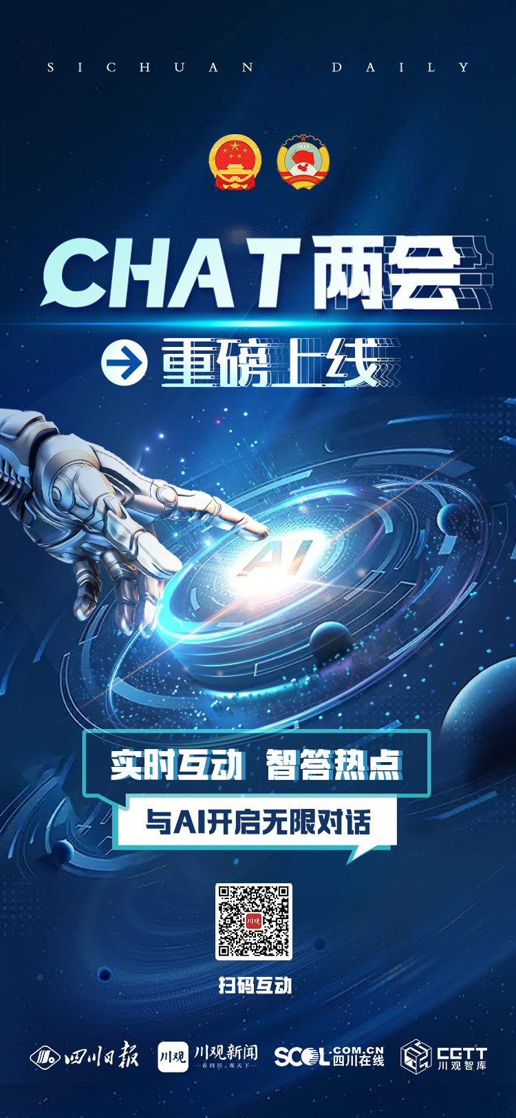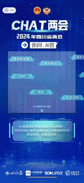 “Chat两会”能快速“吃透”报告,在于其是基于大量准确、专业的两会报道语料数据,训练出的⼀个适用于四川省两会新闻报道的专业大模型。通过多模态理解、内容生成、智能交互的AI核心能力,提供“智库型”两会热点问答服务。