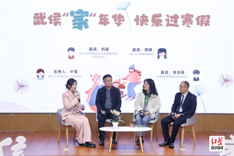 在“武侯‘家’年华,快乐过寒假”主题沙龙中,四川大学博物馆、武侯区晋阳街道吉福社区、四川大学附属实验小学的相关负责人作为嘉宾代表,从不同角度分享了各个领域在协同育人工作中的创新做法,多方面、多角度展示了协同育人的具体实践。此外,武侯区文明办在现场还发布了武侯区2024年寒假关爱未成年人系列活动。