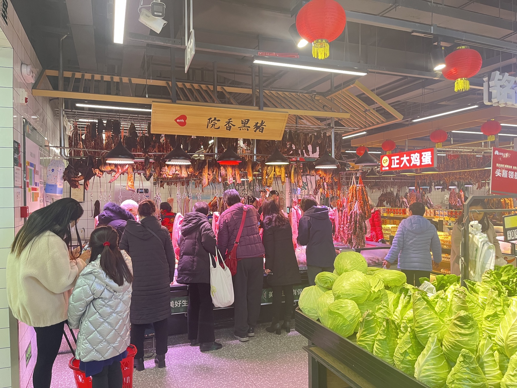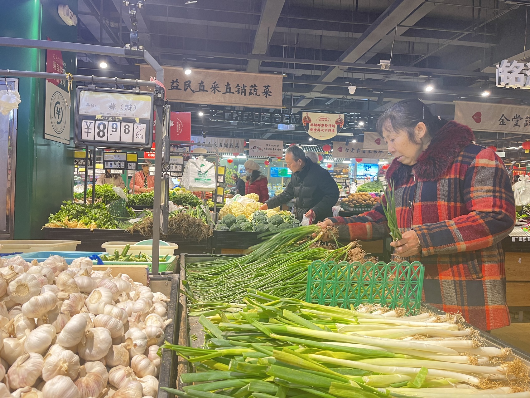 记者在益民菜市长顺街店看到,市场内蔬菜摊点上摆满了堆码整齐的蔬菜,肉类区密密麻麻地悬挂着香肠腊肉,整个市场满是年味与烟火气息。记者从益民菜市相关负责人处获悉,作为重点保供企业,益民菜市多措并举全力保障雨雪天气米、面、油、肉、蛋、菜、奶、果等重要生活必需品市场供应。目前,益民菜市各门店运行平稳有序,供应充足。