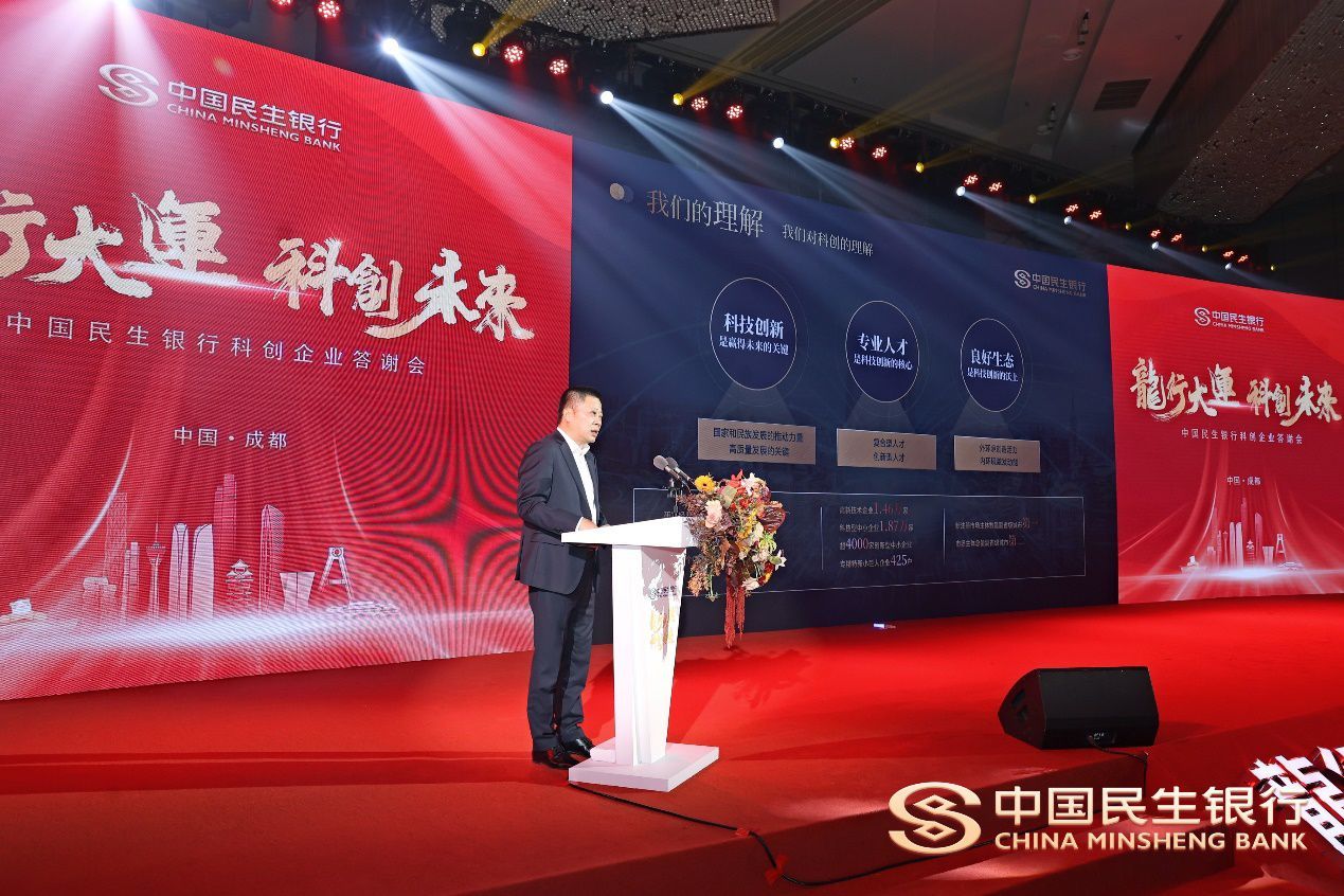 为做好“五篇大文章”、更好地支持科创企业发展,1月23日,中国民生银行在成都举办了“龙行大运 科创未来”科创生态客户答谢会。四川省内26家科创企业代表参会,中国民生银行副行长石杰出席会议并致辞。