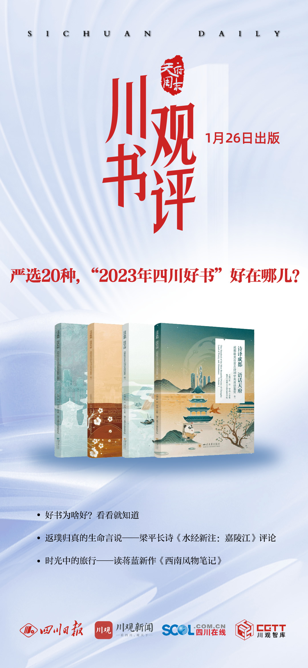 1月26日,星期五。品质阅读、立足全国,本周,天府周末《川观书评》与你相约。