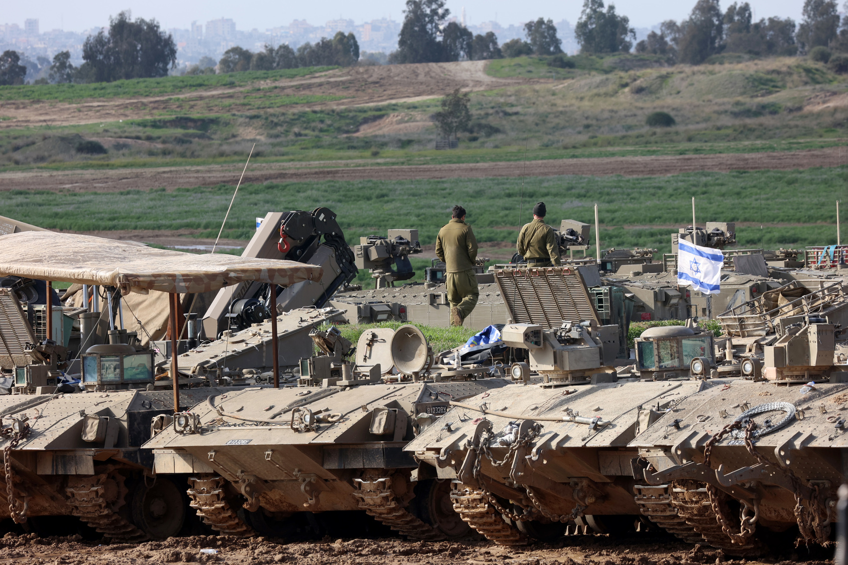 这是1月24日拍摄的加沙边境以色列一侧的以军部队。