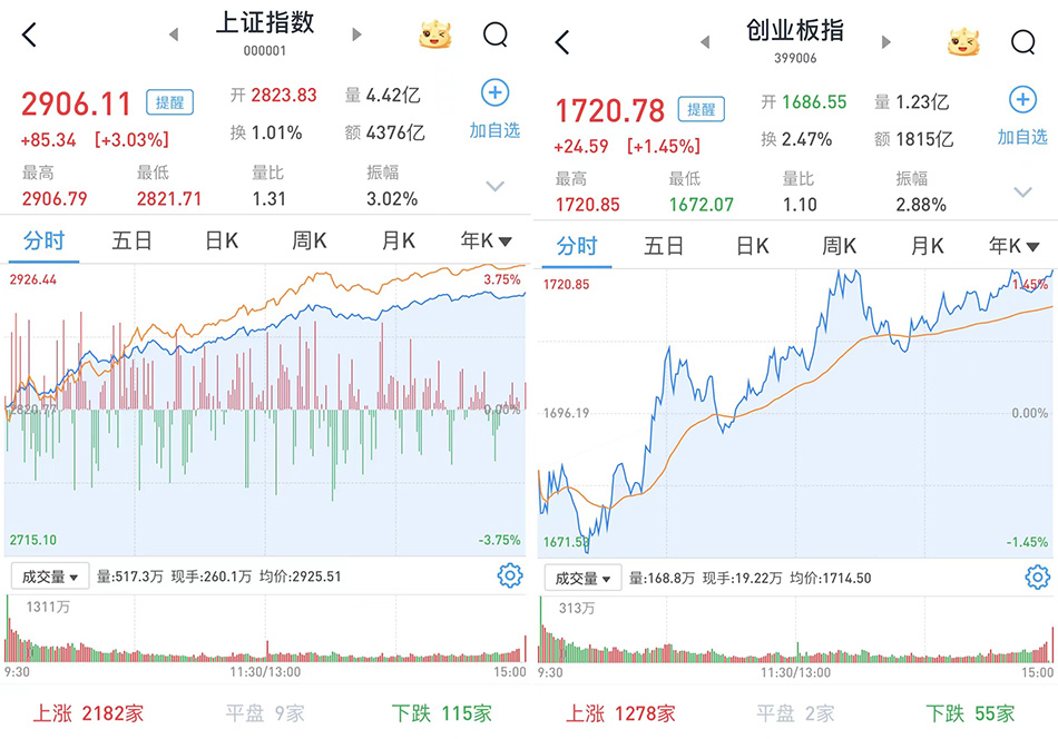 A股出现井喷式上涨,沪指大涨超3%收复2900点关口,“中”字头掀起涨停潮。