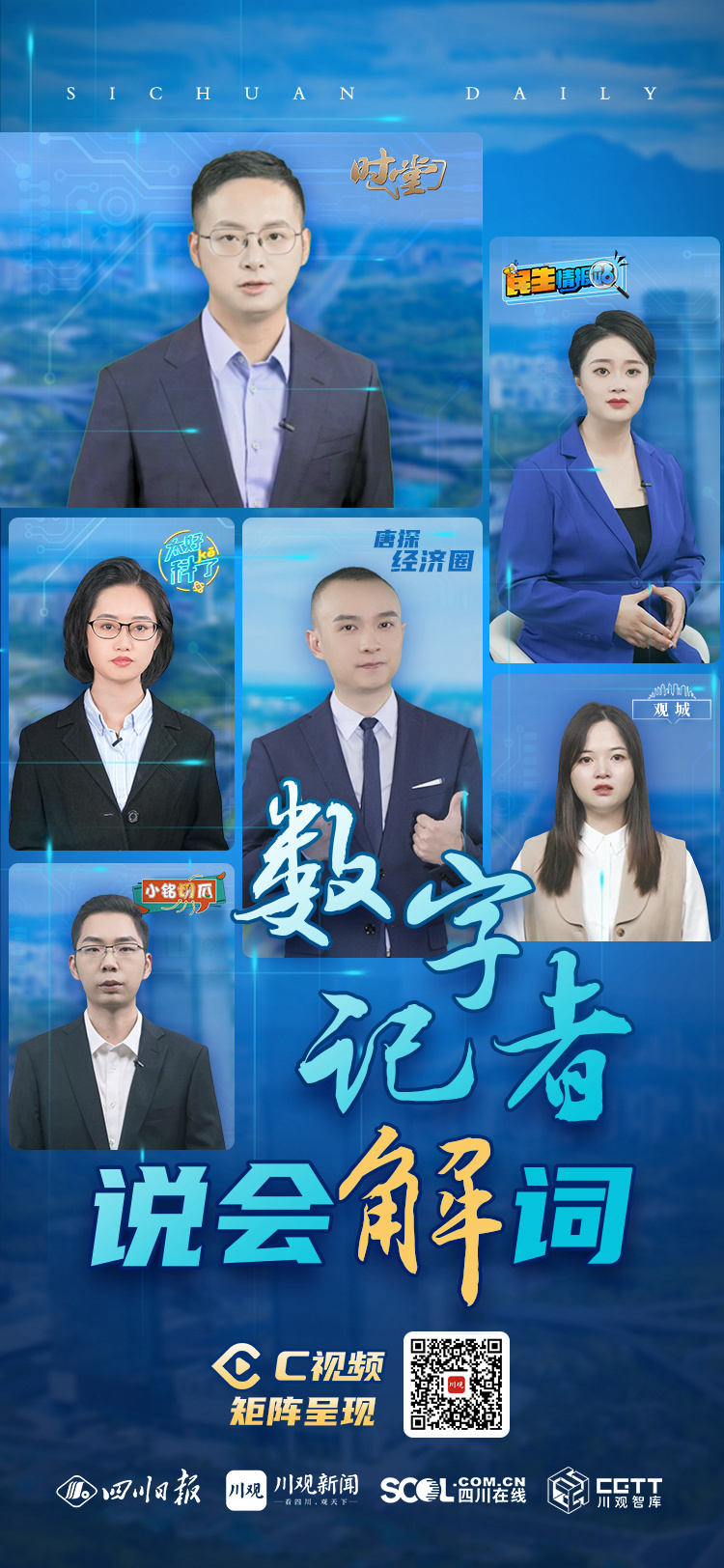 从两会现场来,向数字世界去,川观新闻数字记者和你一起解码两会热点,读懂报告关键词!今年省两会,川观新闻推出7期数字记者说会解词,基于C视频品牌栏目“唐探经济圈”“时堂”“太好科了”“观城”“民生情报站”“小铭切瓜”等,从各自关注的不同领域带广大网友深读两会。运用AIGC助力两会跑快一分钟,算力驱动多线程播报。数字人搭配相关实景画面的风格,增加了画面语言的趣味性和可看性,也为数字记者产品的开发创造了更多可能。值得一提的是,在解读两院工作报告的产品中,数字记者首次联合数字人法官和数字人检察官出镜,增强了互动性。