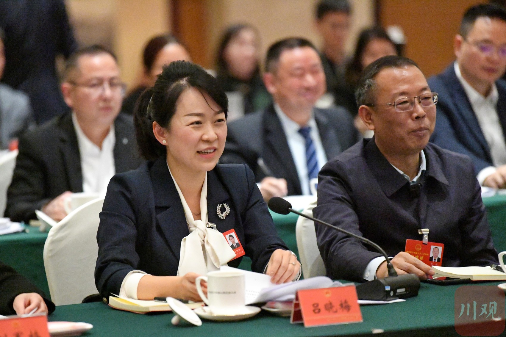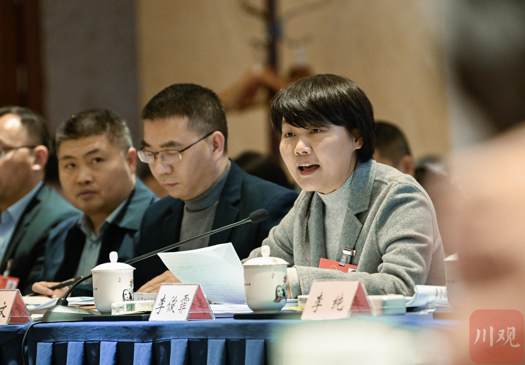 李俊霏代表(右一)就深化改革开放,推动广安探索高质量发展新路子作发言。